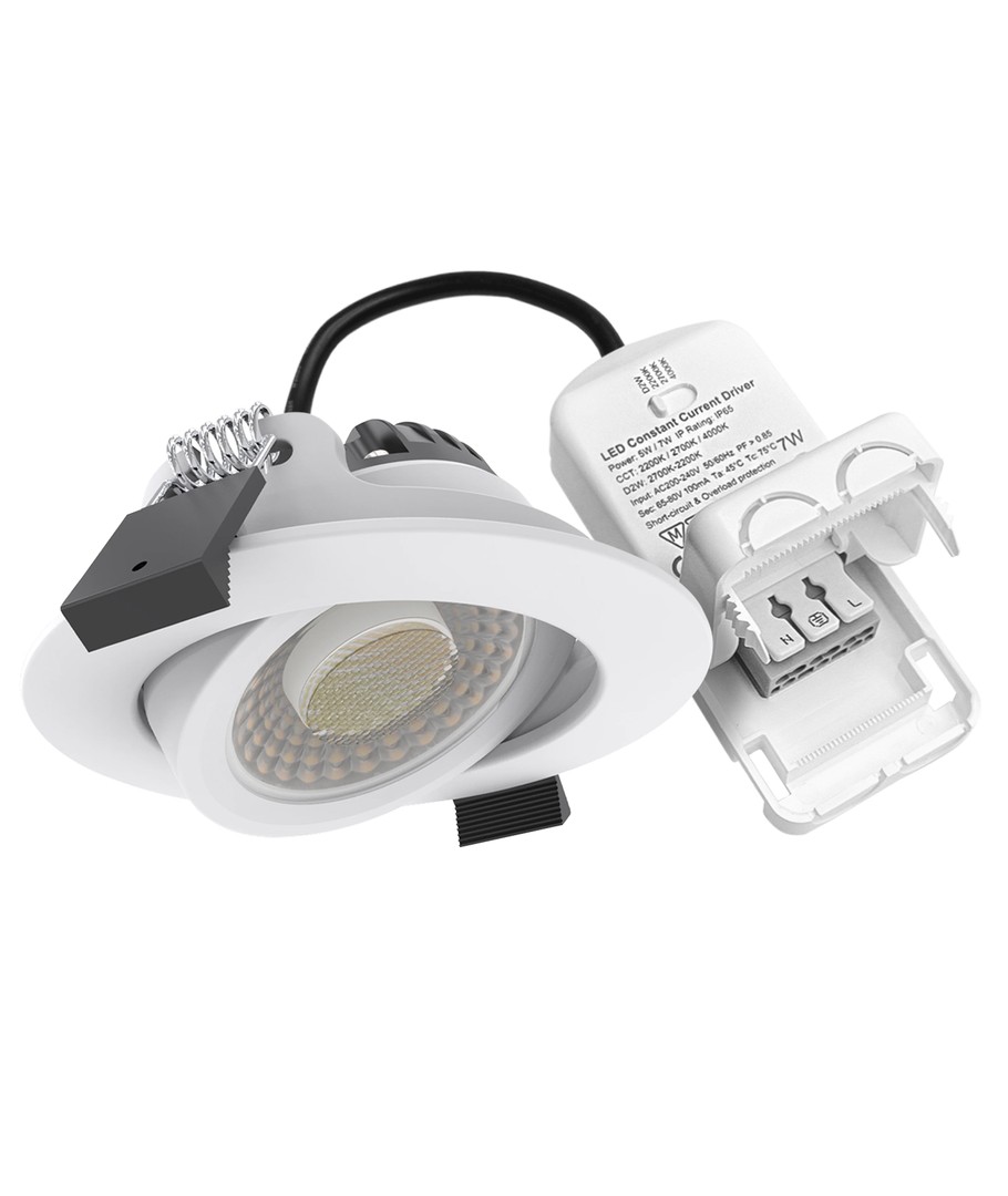 Hull: Ø6,8 cm, Mål: Ø8,3 cm, 7W, hvit kant, dimbar, 230V