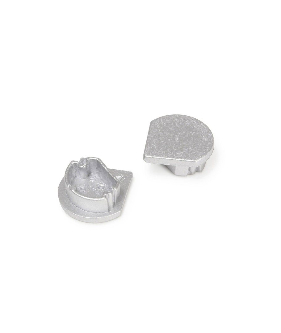 Endestykke QUARTER10 D er et sølvfarget tilbehør, designet for å avslutte aluprofiler på en elegant måte.