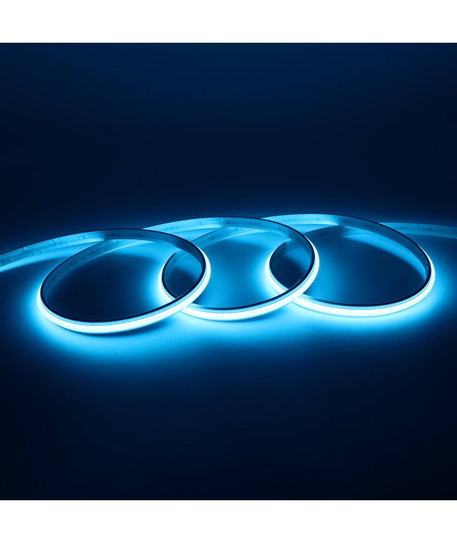 Enkeltfarget lyseblå COB LED stripe med 240 LED'er per meter.
