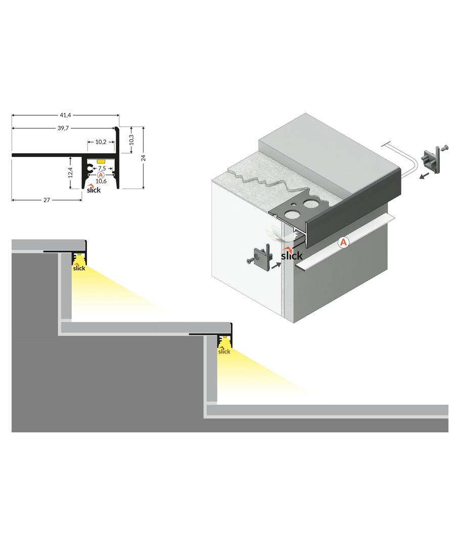Anodisert, fliseprofil, LED skinne