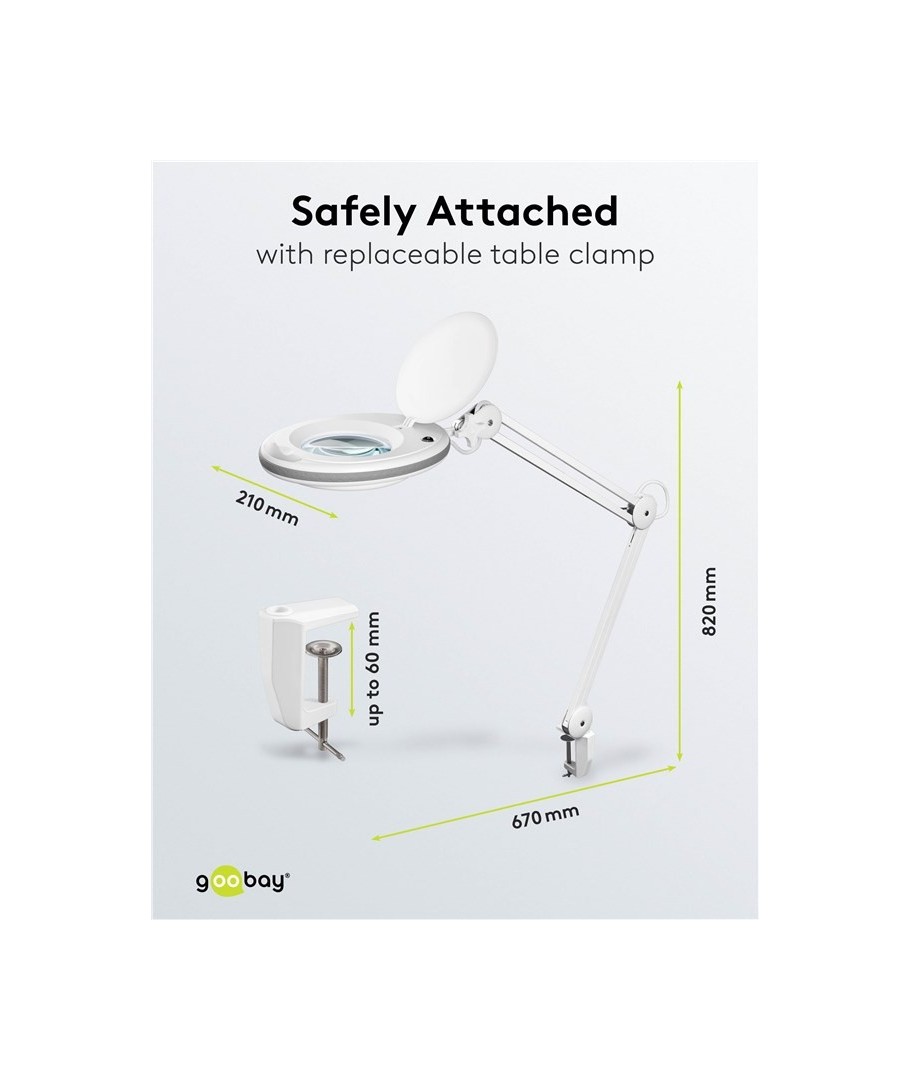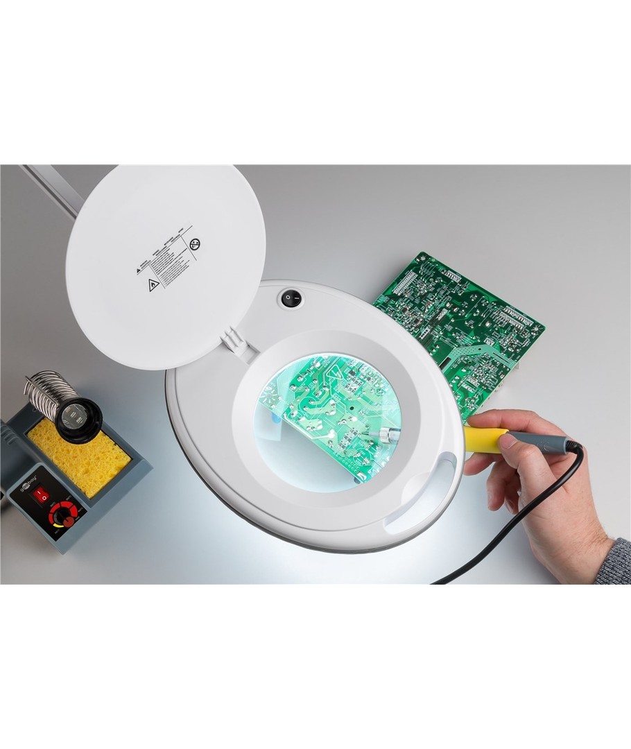 Oppnå perfekt belysning og sylskarp klarhet med vår LED forstørrelseslampe, designet for optimal ytelse og funksjonalitet. Med en effekt på 8W, tilbyr denne lampen en bemerkelsesverdig lysstyrke på 650 lumen, noe som gir et klart og jevnt lys som er ideelt for presisjonsarbeid.