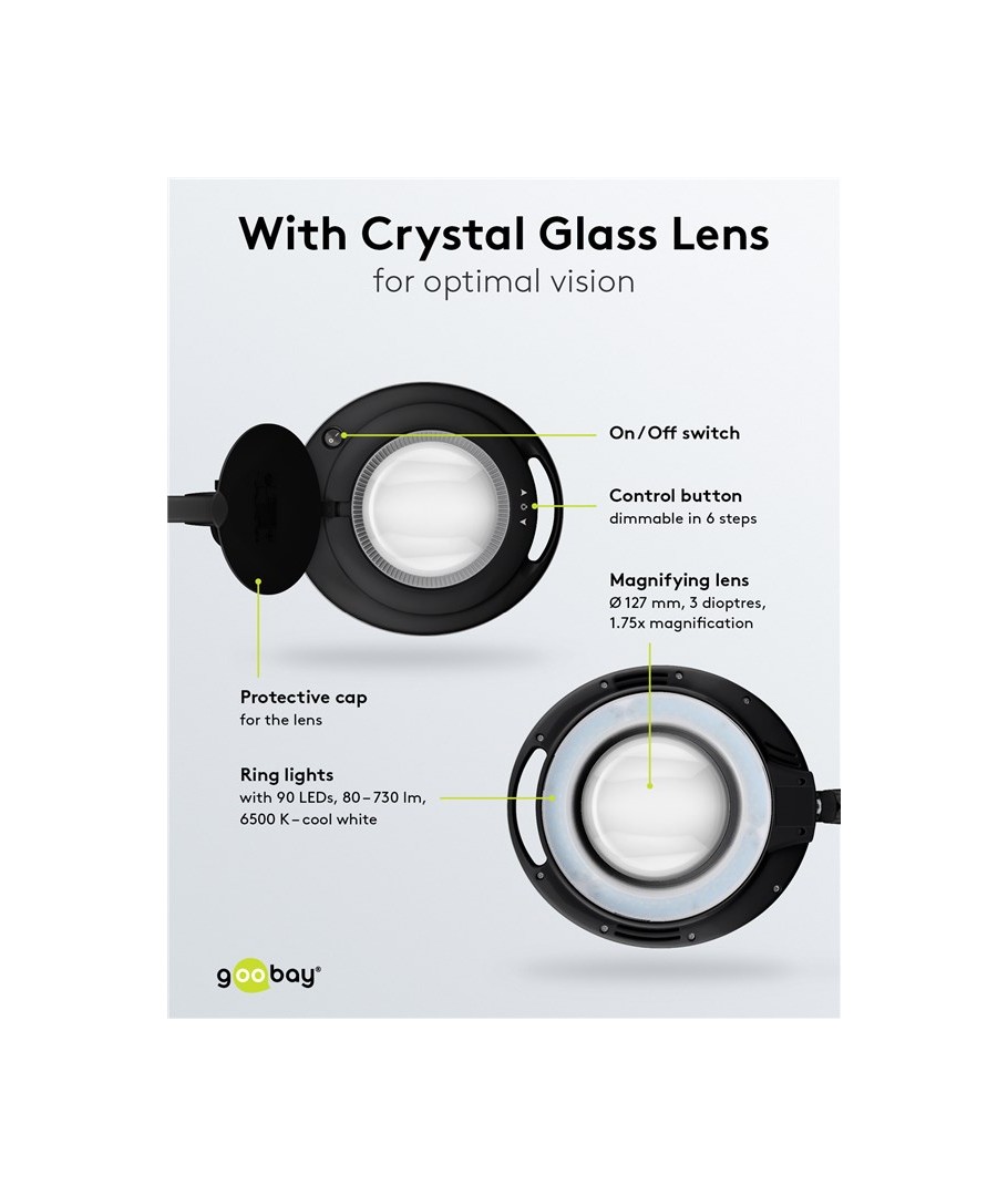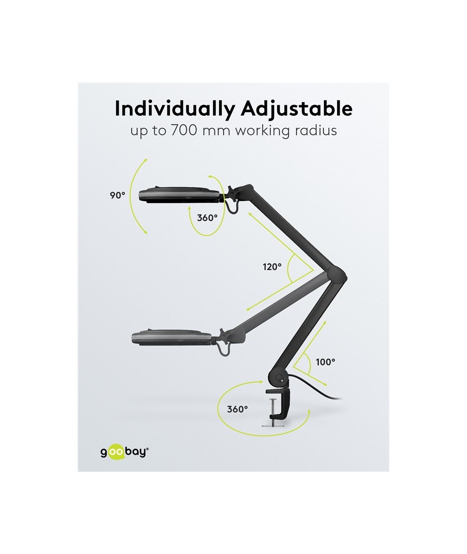 Opplev en ny dimensjon av presisjon og klarhet med vår luplampe med justerbart hode og allsidig klemme! Denne lampen er det ultimate verktøyet for alle som trenger skarpe detaljer og belysning på arbeidsområdet sitt.