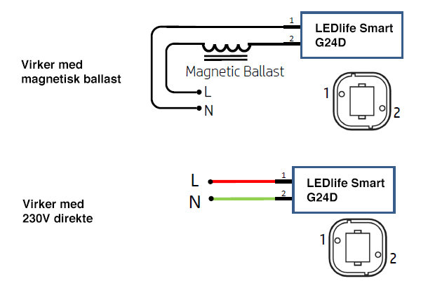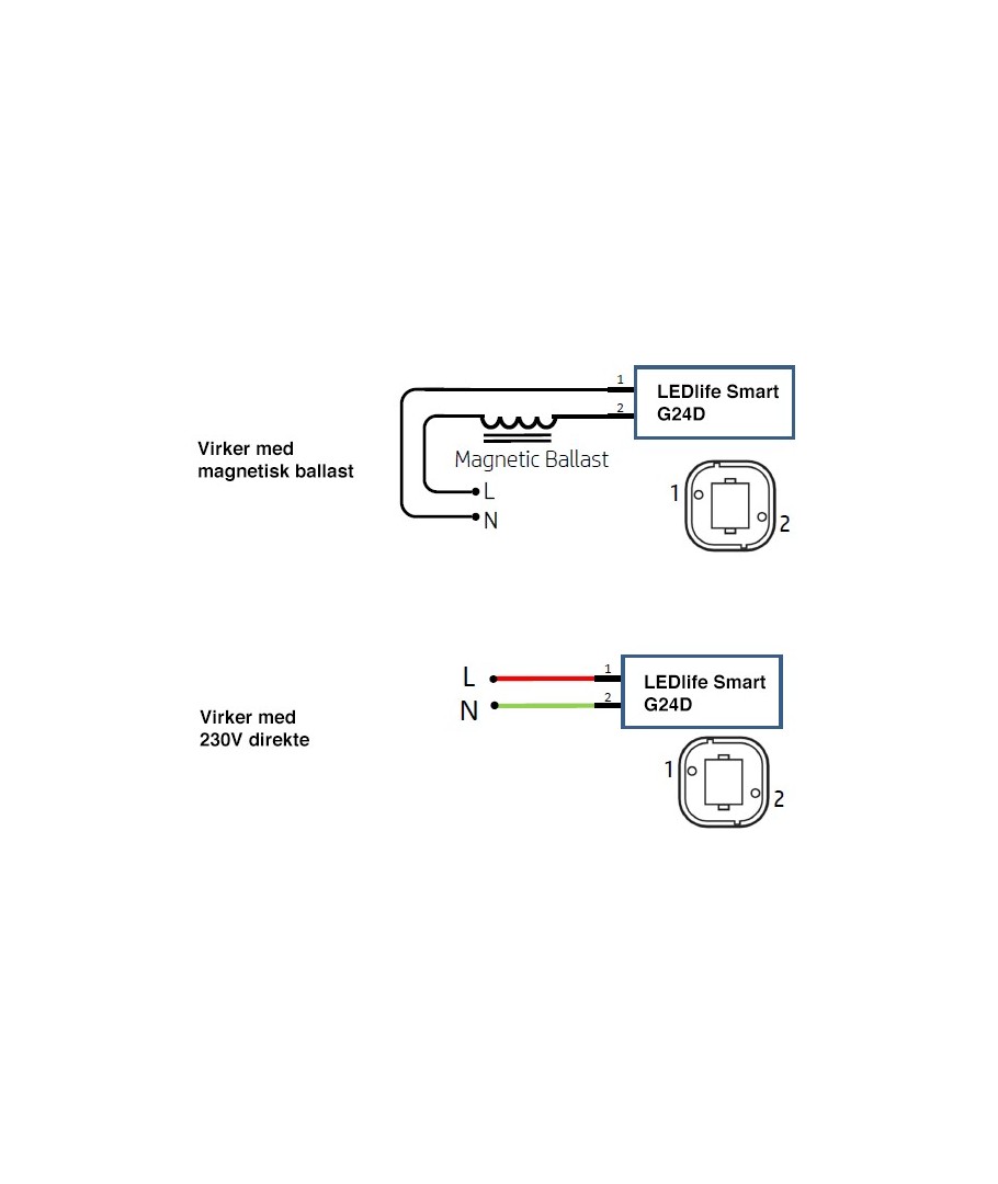 Ballast kompatibel og kan også brukes med 230V direkte.