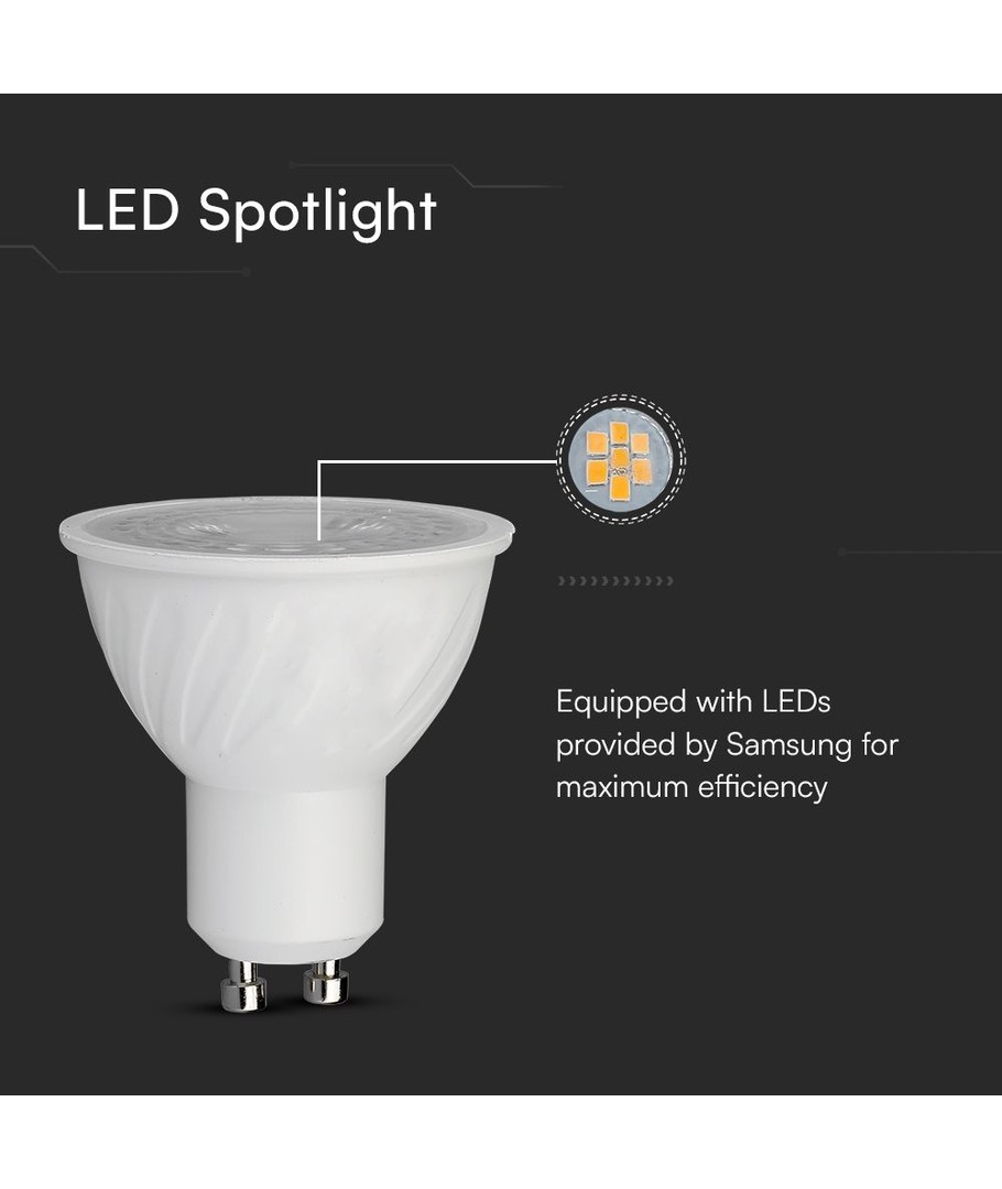 Opplev den effektive belysningen med V-Tac 6W LED spot, utstyrt med en avansert Samsung LED chip for optimal lysstyrke og ytelse.