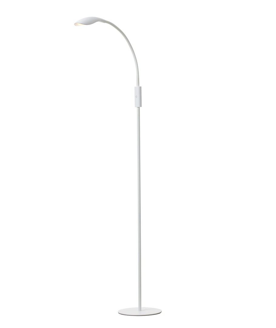 Hvit LED gulvlampe fra Nielsen Light med navnet Mamba i et unikt design. Lampen har innebygd Touch lysdemping på selve stangen, så det gjør det enkelt å betjene den. På/av finnes også i samme kontakt som lysdempingen er plassert.