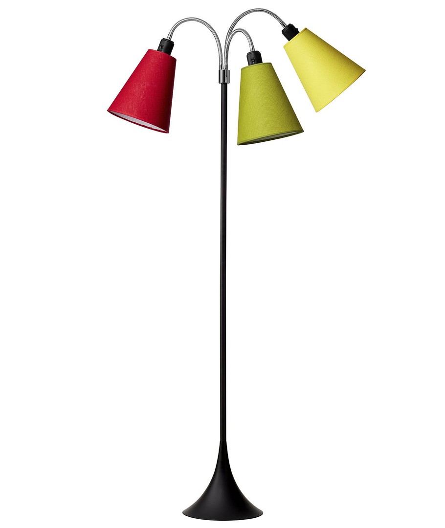 Den klassiske, funksjonelle gulvlampe i elegant design, med 3 skjermer i forskjellige farger.