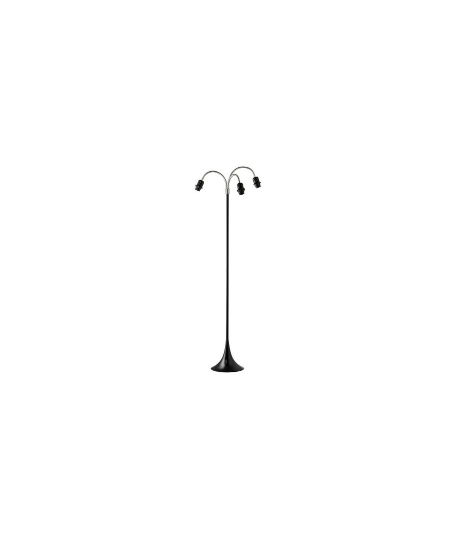 Dens sorte, trompetformede stamme, ender i tre separate fleksarmer i skinnende krom, som hver fleksarm ender i en deilig, allsidig E27 sokkel, slik at man selv kan kjøpe den helt riktige pæren fra et bredt utvalg av forskjellige lyskilder.
