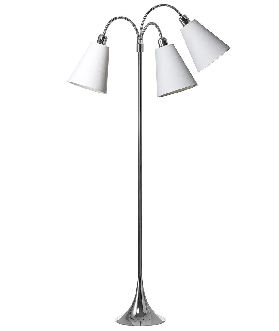 Den klassiske, funksjonelle gulvlampen i elegant design, med 3 skjermer i hvit farge.