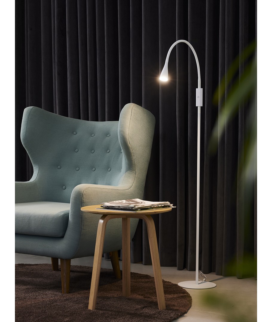 Hvit LED gulvlampe fra Nielsen Light med navnet Twist i et flott og enkelt design. Lampen har innebygd Touch dimmer på selve stangen, så det gjør det enkelt å betjene den. Av/på finnes også i samme kontakt som dimmeren er plassert.