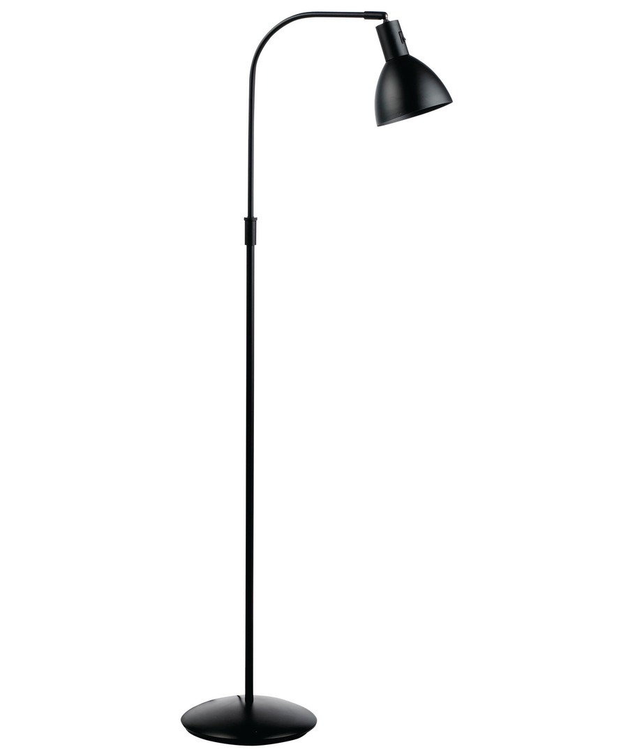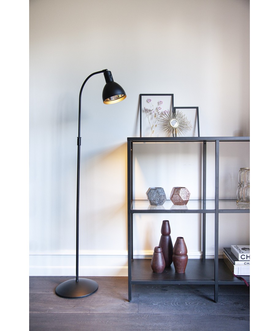 Den svarte overflaten gir en tidløs og allsidig estetikk, som enkelt integreres i ulike interiørstiler. Lampens slanke konstruksjon gjør at den passer utmerket selv i trange hjørner, samtidig som den gir en varm og tiltalende belysning.