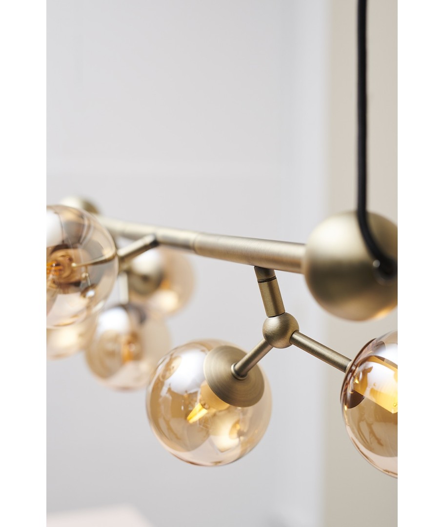 - Glassdetaljer: De seks glasskulene bidrar til å spre lyset jevnt og skaper en behagelig belysning i rommet.