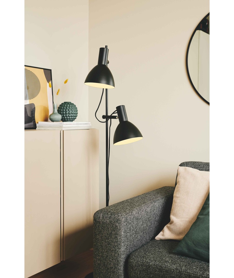 Med et slankt sort design er gulvlampen perfekt for de som ønsker et moderne og sofistikert inntrykk i hjemmet. Den minimalistiske stilen gjør den ideell for både stuer og arbeidsrom.
