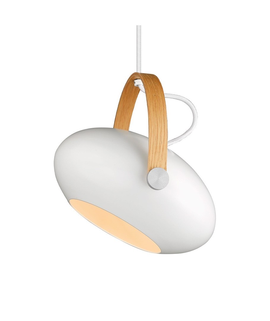 En av de mest bemerkelsesverdige egenskapene til denne pendellampen er dens rene og moderne design. Den hvite overflaten harmonerer vakkert med detaljer i eik, noe som gjør den til et iøynefallende element i ethvert interiør. Lampens kompakte dimensjoner på 25 x Ø26 mm gjør det enkelt å plassere den i både små og store rom uten å virke dominerende.