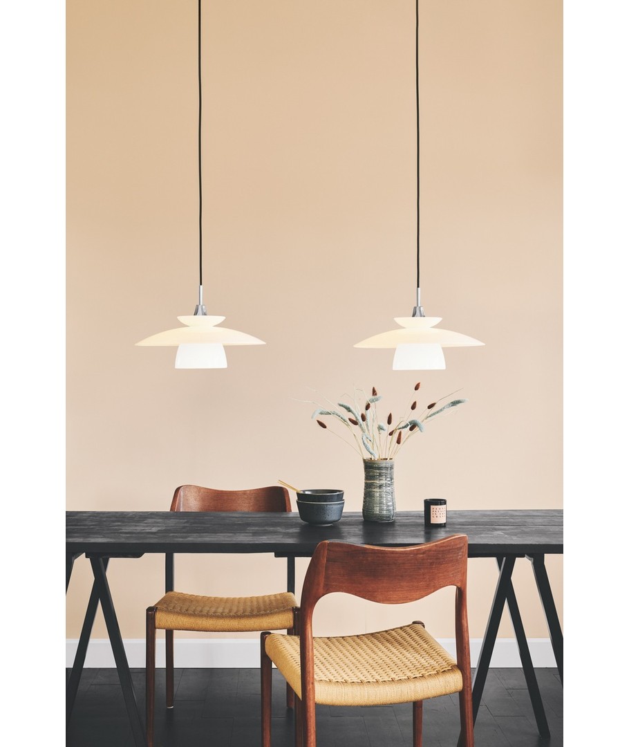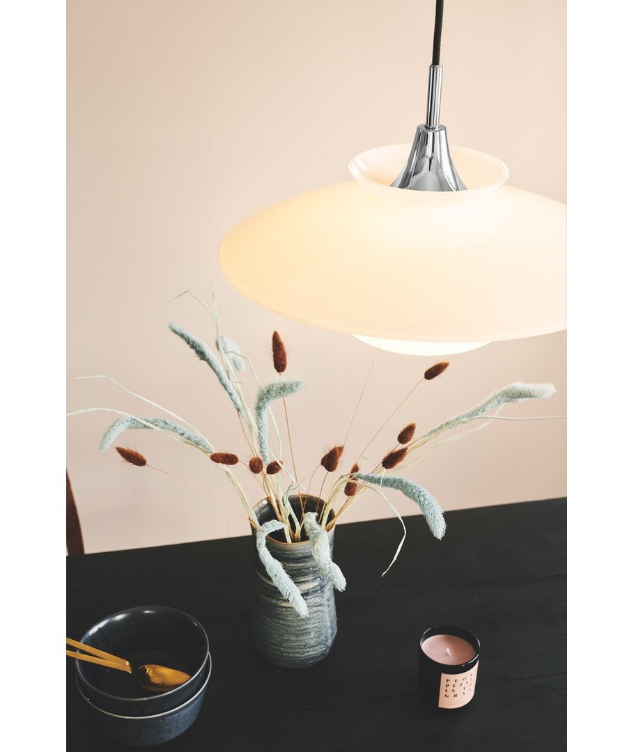 Utforsk enkelheten og den skandinaviske estetikken med denne pendelen, designet av Halo Design. Den elegante kombinasjonen av opalglass og kromdetaljer gir en moderne, men likevel tidløs følelse som passer inn i mange interiørstiler.
