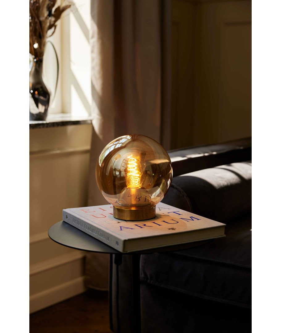 Den ravfargede glasskuppelen skaper en varm glød og en stemningsfull belysning som er ideell for stuer, soverom eller arbeidsrom.