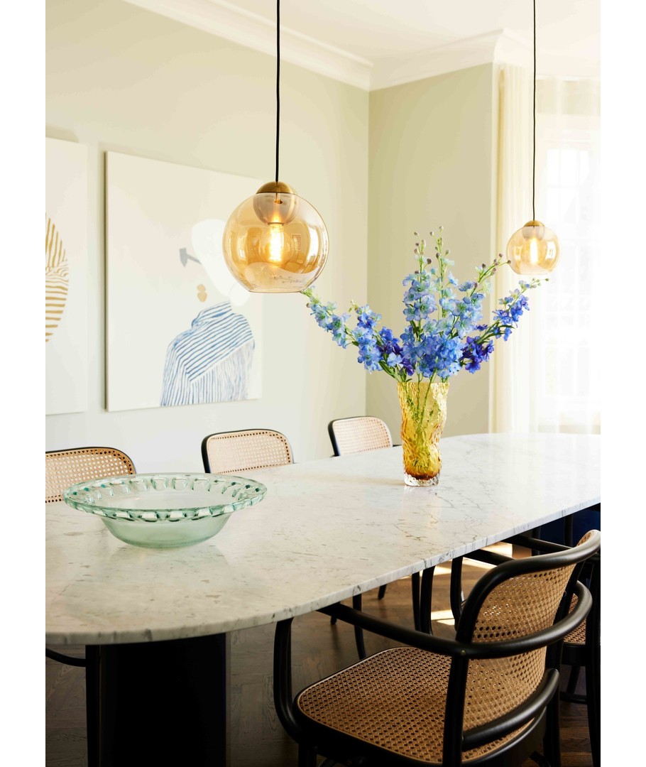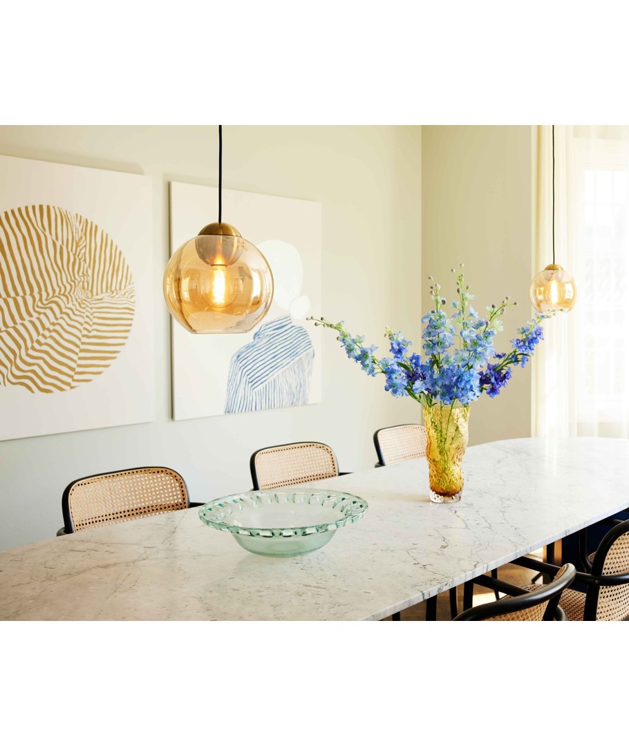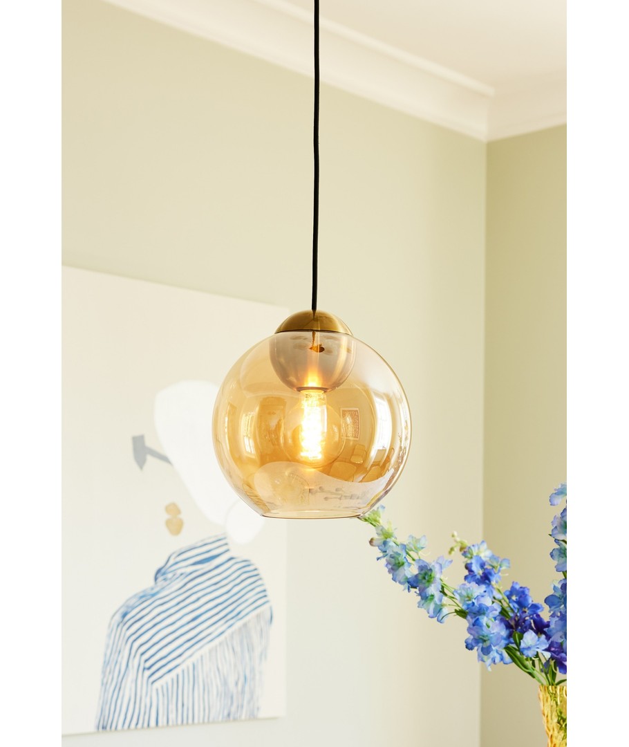Anhengslyset har en nydelig amber fargetone som gir rommet et varmt og innbydende preg. Den runde formen med dimensjoner på 25 x Ø24 mm gjør det til et diskret, men allikevel distinkt element i ethvert rom. Den vakre overflaten fungerer utmerket i kombinasjon med andre deler av innredningen, og skaper en sammenhengende stil.