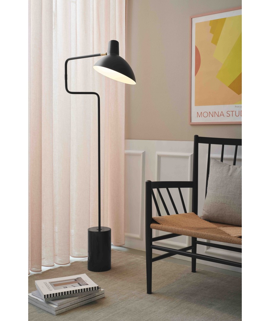 Lampen står stødig på en solid marmorbase som gir den både vekt og en luksuriøs følelse. Det sofistikerte designet kompletteres av en svingarm som gir optimal fleksibilitet for lysetting.