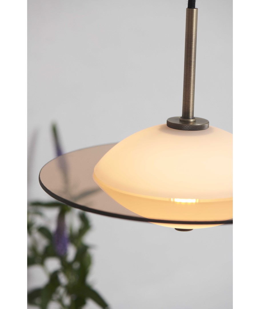 Opplev hvordan eleganse møter funksjonalitet med denne intrikate pendellampen. Utformingen kombinerer det stilfulle uttrykket av antikk messing med den myke, diffuse belysningen fra opalglass. Denne kombinasjonen gir et tidløst uttrykk som smelter sømløst inn i ethvert moderne hjem.