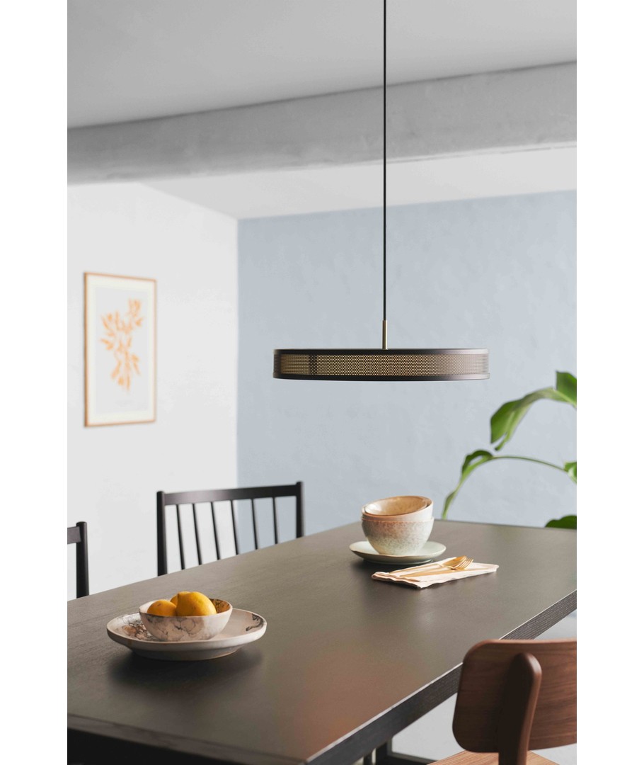 Frame Pendel er laget av høykvalitets metall som sikrer både holdbarhet og stil. Det unike designet med en diameter på 43 cm gir en distinkt og stilfull geometrisk form som vil tiltrekke seg beundrende blikk. Lampen har en fast høyde på 6 mm, noe som gjør den både elegant og diskret.