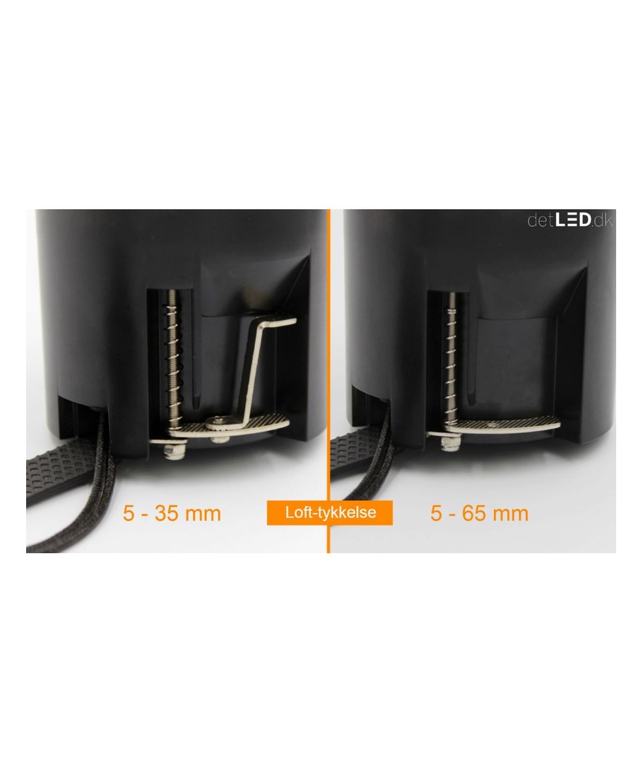 Kan stilles inn til forskjellige taktykkelser. Den passer vanligvis 5-35mm, men kan endres til å passe i 5-65mm, som du kan se på bildene.