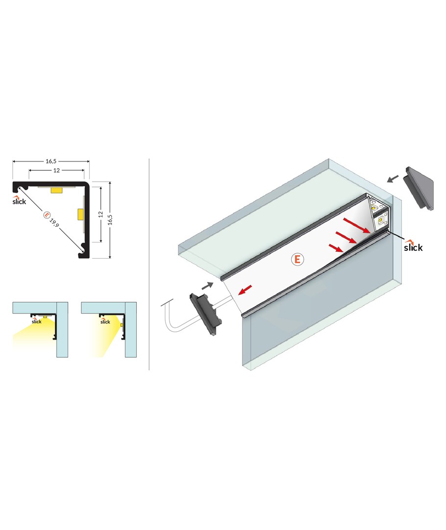 Sort anodisert, hjørne, LED skinne