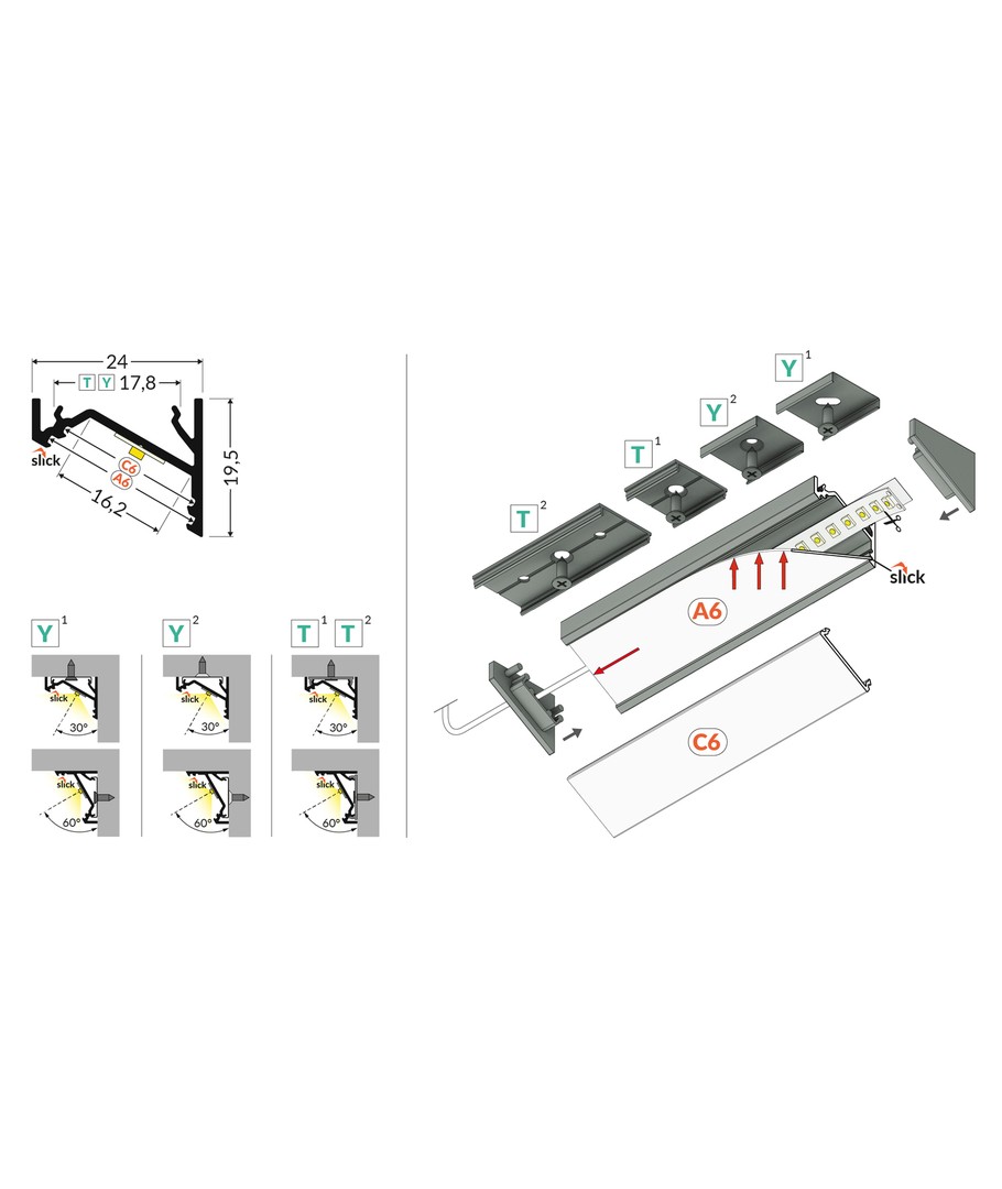 2m aluprofil CORNER16.V2 AC-6/TY - Ubehandlet aluminium, hjørne, LED-skinne, er en funksjonell komponent for LED-installasjonsprosjekter.