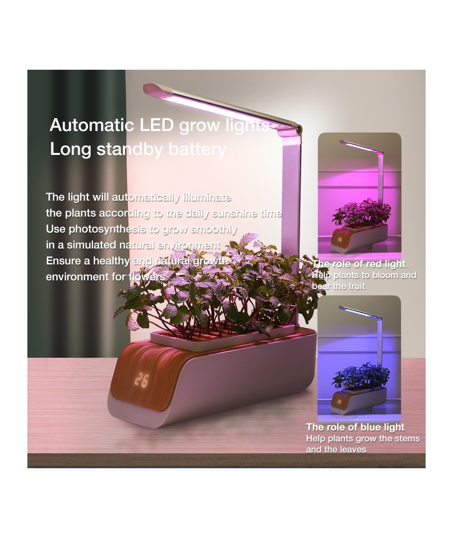 LEDlife urtehagen kommer dessuten med et innebygd termometer som viser temperaturen i rommet på displayet foran.