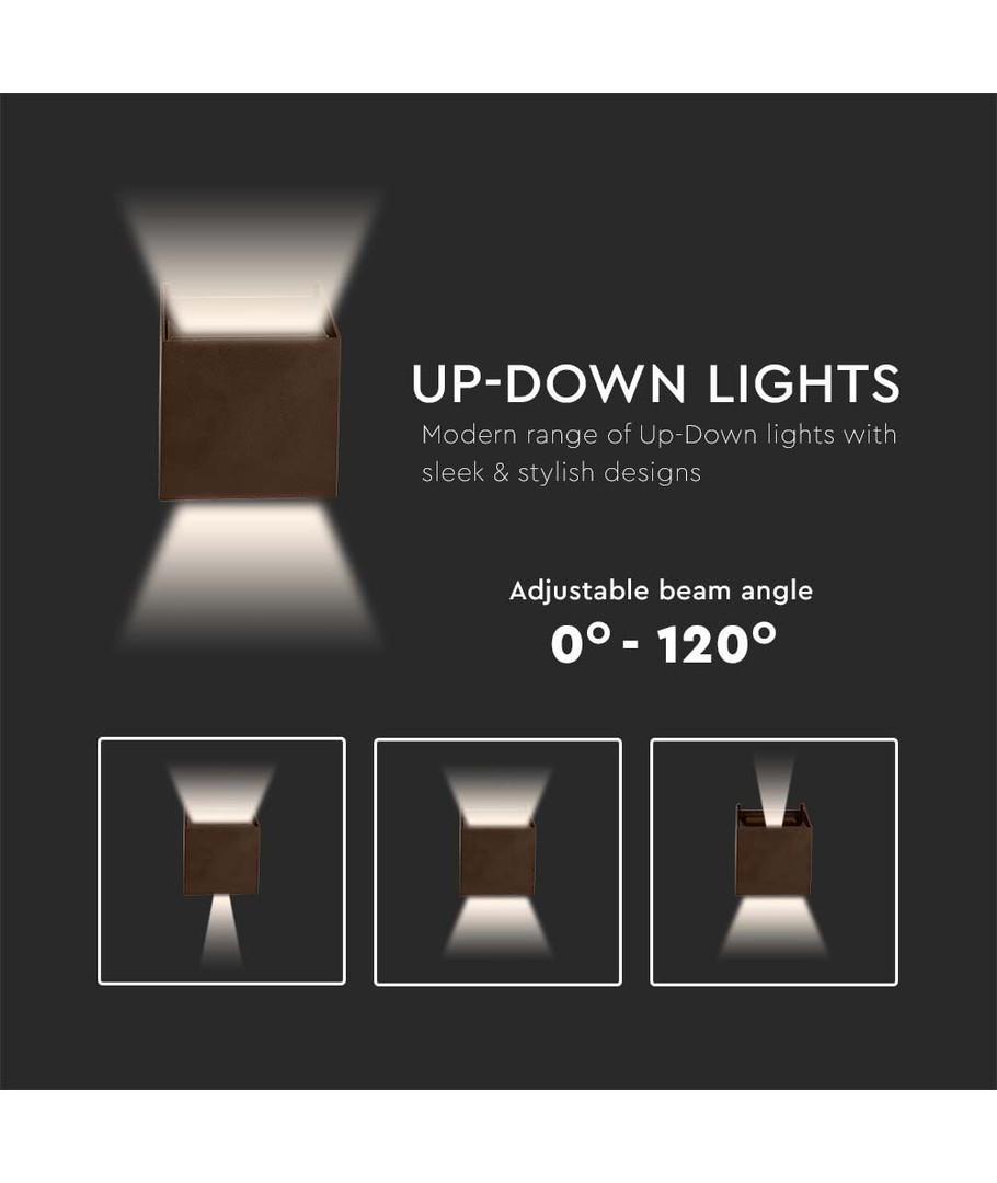 Gi uteområdet ditt et moderne løft med denne stilige 11W LED vegglampen som kombinerer funksjonalitet og estetikk. Designet i en firkantet form og utført i en rustikk corten-finish, kan denne lampen integreres sømløst i ethvert miljø.