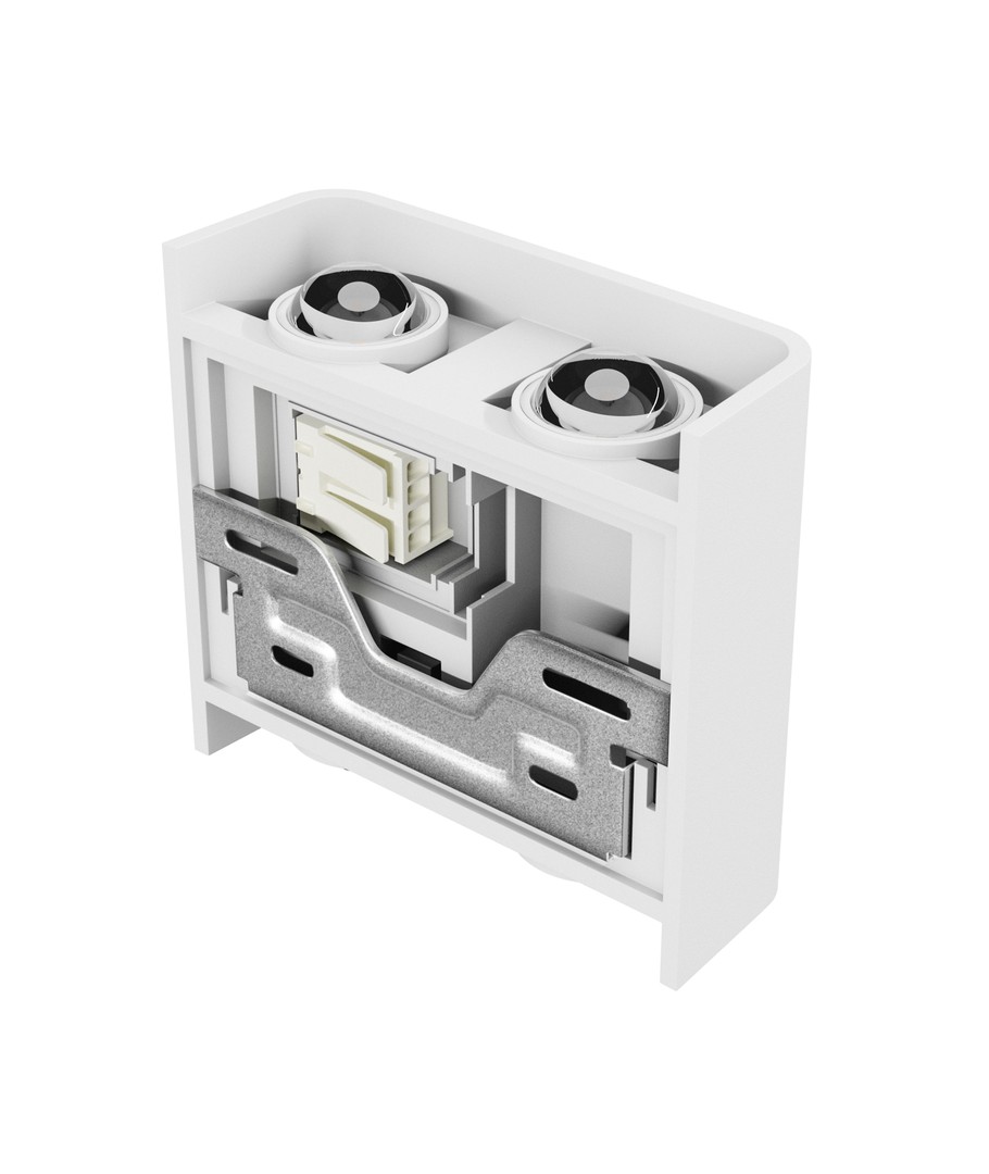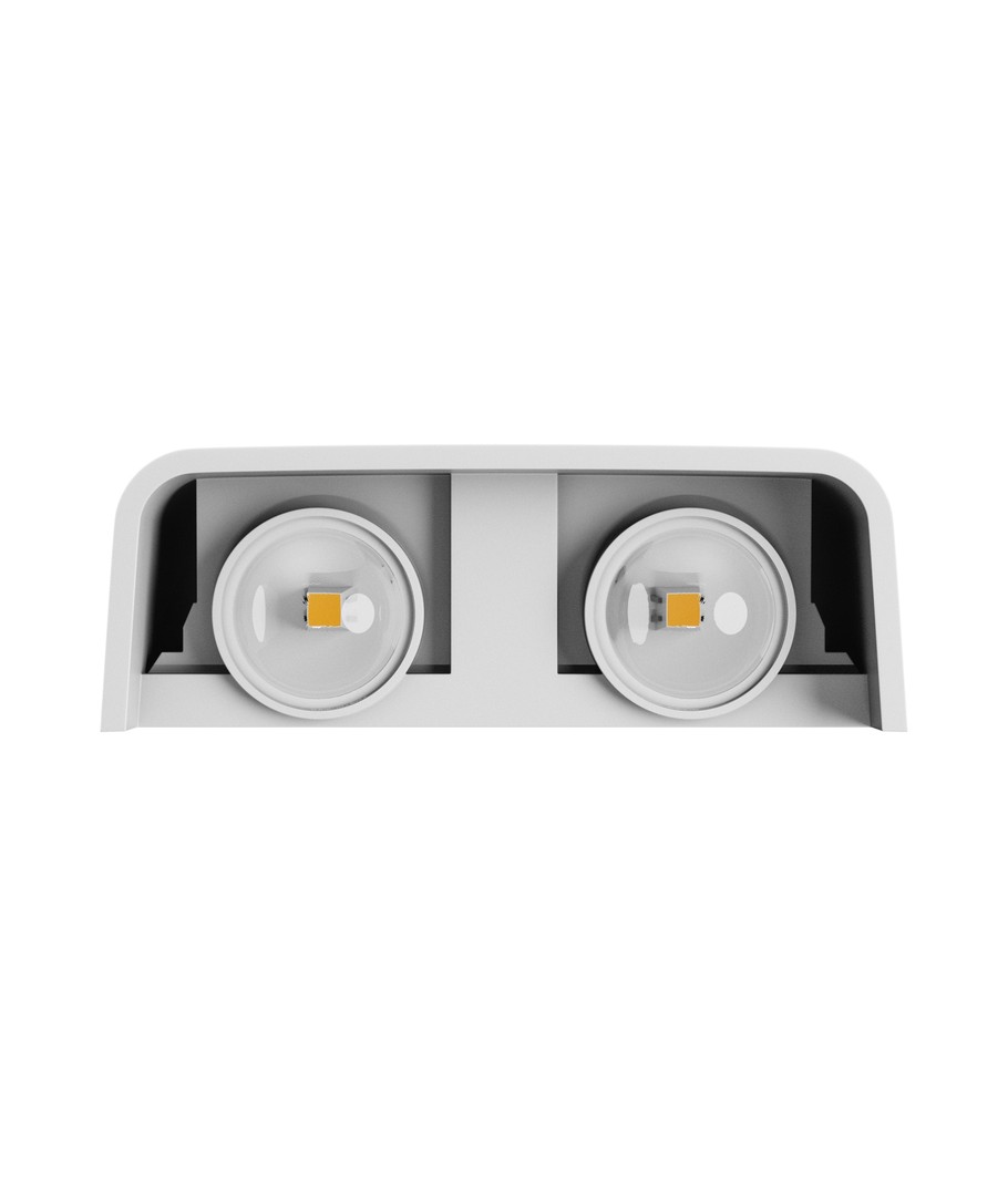 Lampens design er kompakt med dimensjoner på 100 x 110 x 40 mm, noe som gjør det enkelt å plassere den på vegger uten å ta opp mye plass. Det lekre, hvite designet passer sømløst inn i alle stiler av hjem og arkitektur.
