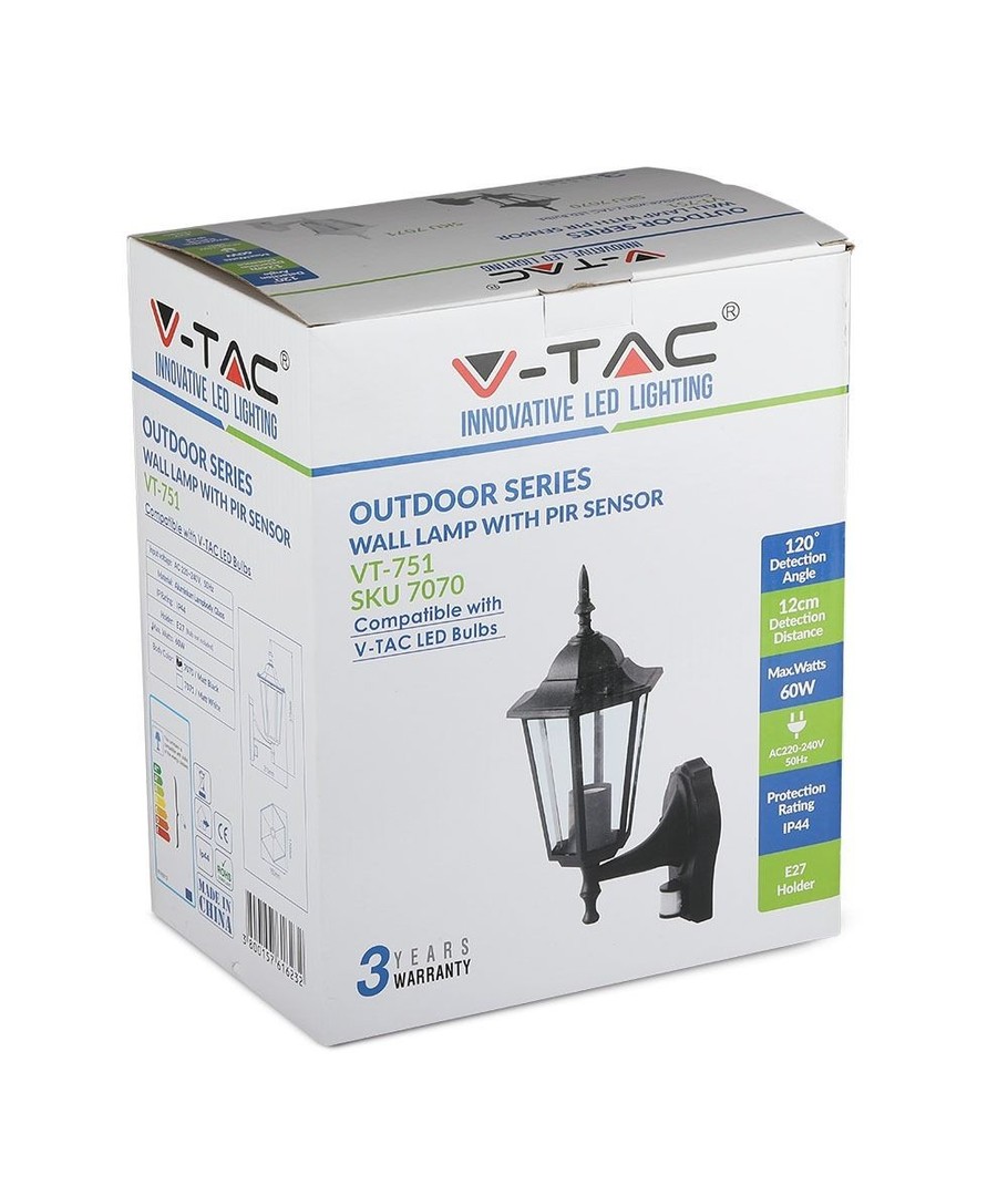 Den innebygde sensoren aktiverer lampen ved registrert bevegelse, noe som gir strømsparende belysning uten kompromiss på sikkerheten. Med en standard E27 sokkel, har du fleksibiliteten til å velge en lyskilde som passer dine preferanser, enten det er LED, halogen eller glødelampe.