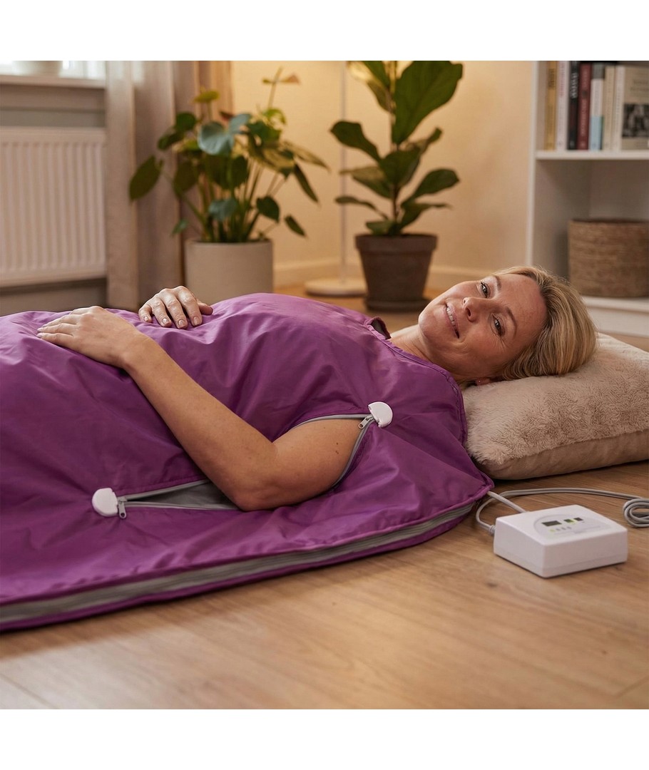 Oppnå dyp avslapning med Vitality Saunateppet med 2 varmesoner. Dette innovative teppet kan justeres i temperatur fra 35-80 grader, og tilbyr 20-60 minutters behandling for økt velvære. Enkel å bruke, da du bare kobler til strøm, trykker på start og stiller inn tid og temperatur.