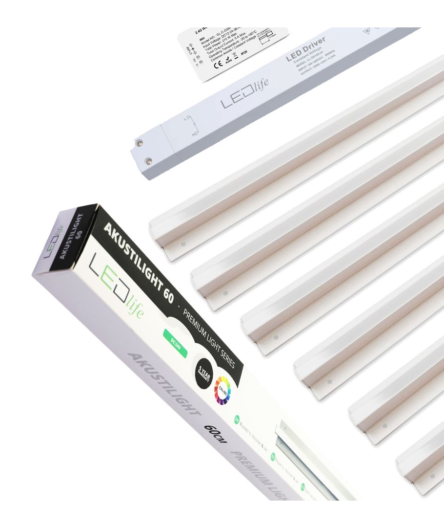 Oppgrader ditt rom med Akustilight Trebetong/Gips LED Skinnesett for en kombinasjon av stilfull design, energibesparelse og fremragende lyskvalitet – det beste valget for den moderne innredningen.