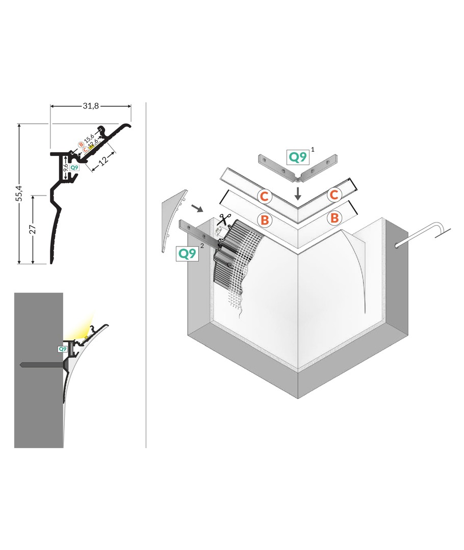 Ubehandlet aluminium, innfelling, LED-skinne