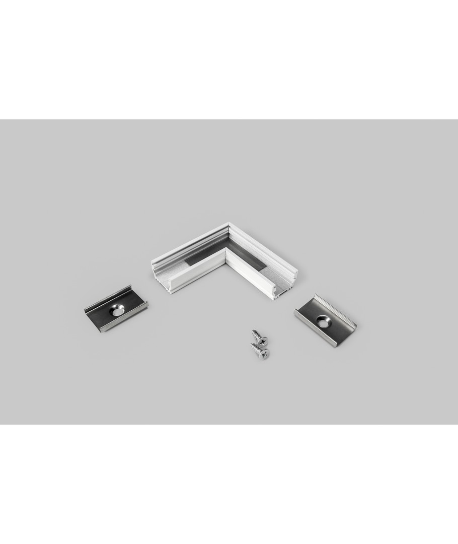 Profilsamler UNI12 90DEG - Hvit lakkert er en komponent designet for å koble aluprofiler i en vinkel på 90 grader, perfekt for å skape rene hjørner i dine prosjekter.