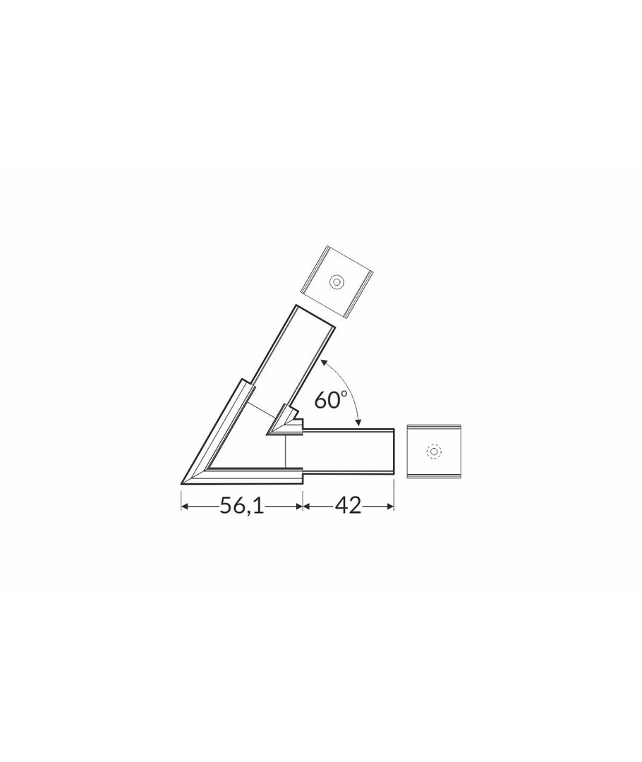 - Vinkel: Designet for å forbinde profiler i en 60 graders vinkel.