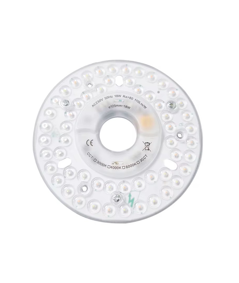 Hovedfunksjoner:Med en omkrets på Ø13 cm og en dybde på 12 mm, passer denne LED-innsatsen godt inn i de fleste armaturer. Med sin varme hvite fargetone (3000K), skaper den en behagelig og avslappende atmosfære som er ideell for stuer, soverom og andre oppholdsrom.