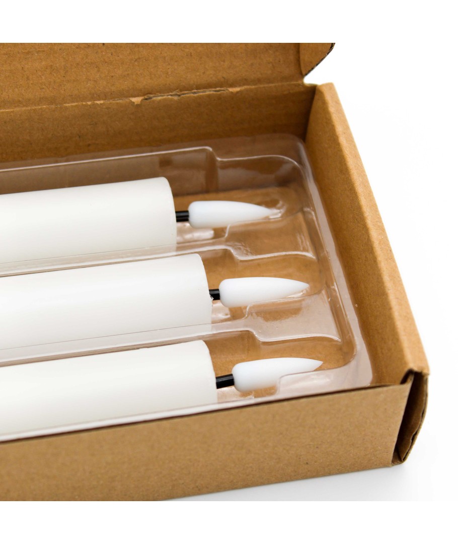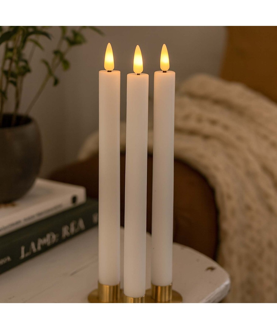 Opplev den koselige atmosfæren av levende lys uten risikoen for åpen ild med vår 3-pakning hvite LED stearinlys. Disse lysene kombinerer eleganse og sikkerhet med en naturtro flammeeffekt som lyser opp hjemmet ditt på en vakker og realistisk måte.