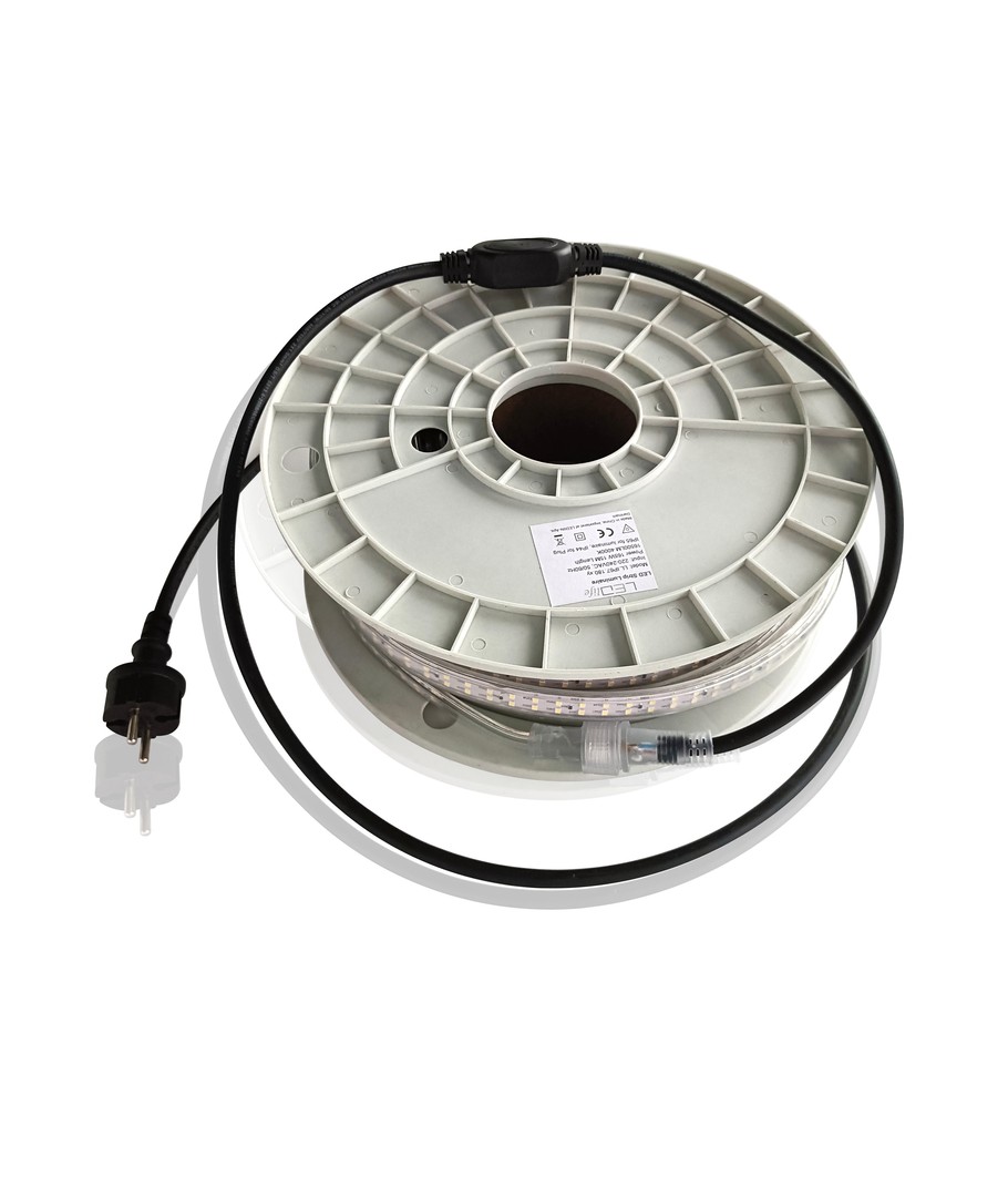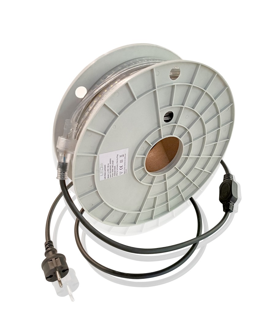 Må kobles til en 230V forsyning og er utstyrt med en robust IP68-klassifisering, som gjør at LED stripen er vanntett og kan brukes under vann opp til 1 meters dybde. Dette gir deg fleksibilitet til å installere den både innendørs og utendørs, selv under krevende værforhold.