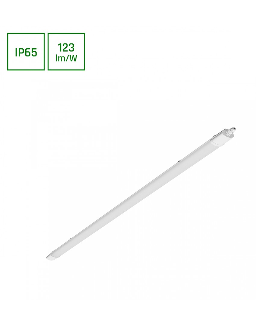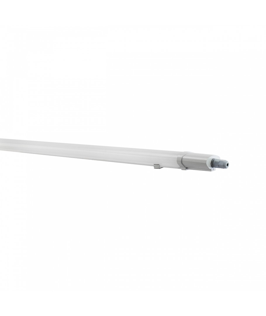 Med en IP65-klassifisering er armaturen både vann- og støvbestandig, noe som gjør den ideell for bruk i områder der den kan bli utsatt for vannsprut og regn. Perfekt for garasjer, lager, verksteder og utendørs belysning.