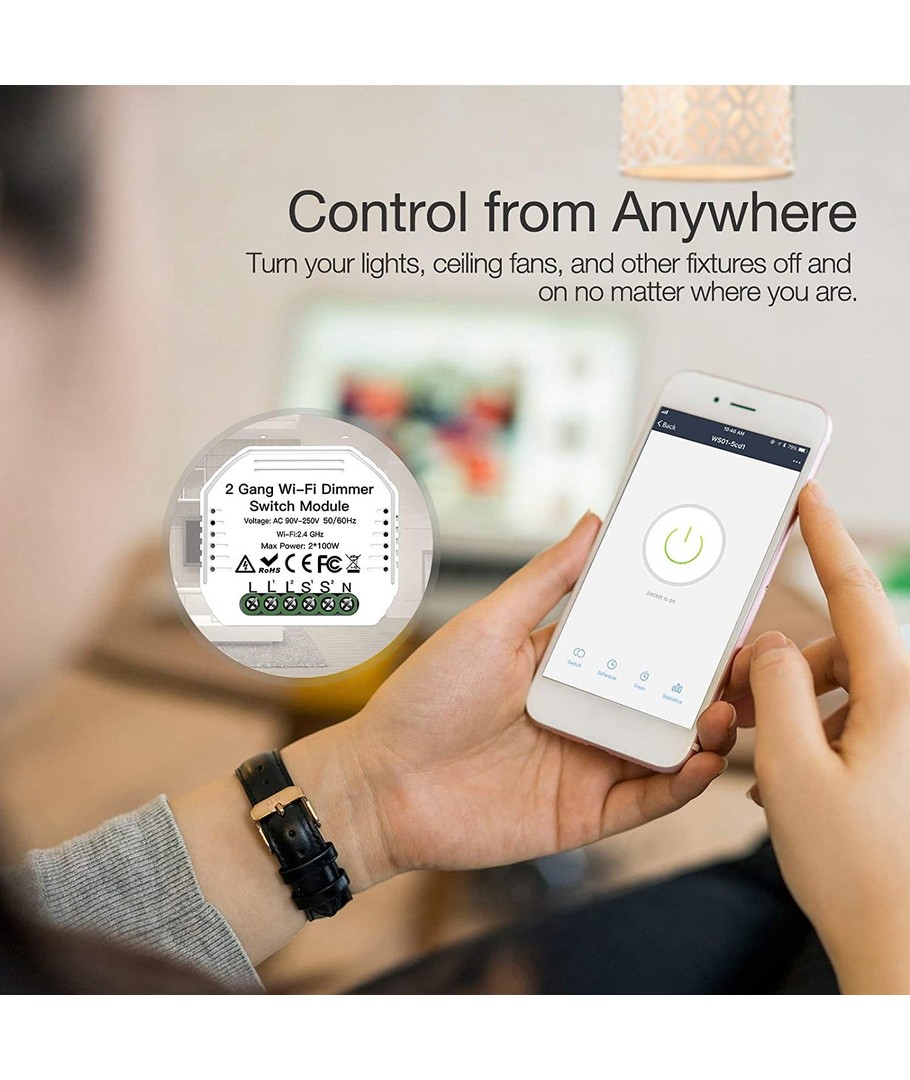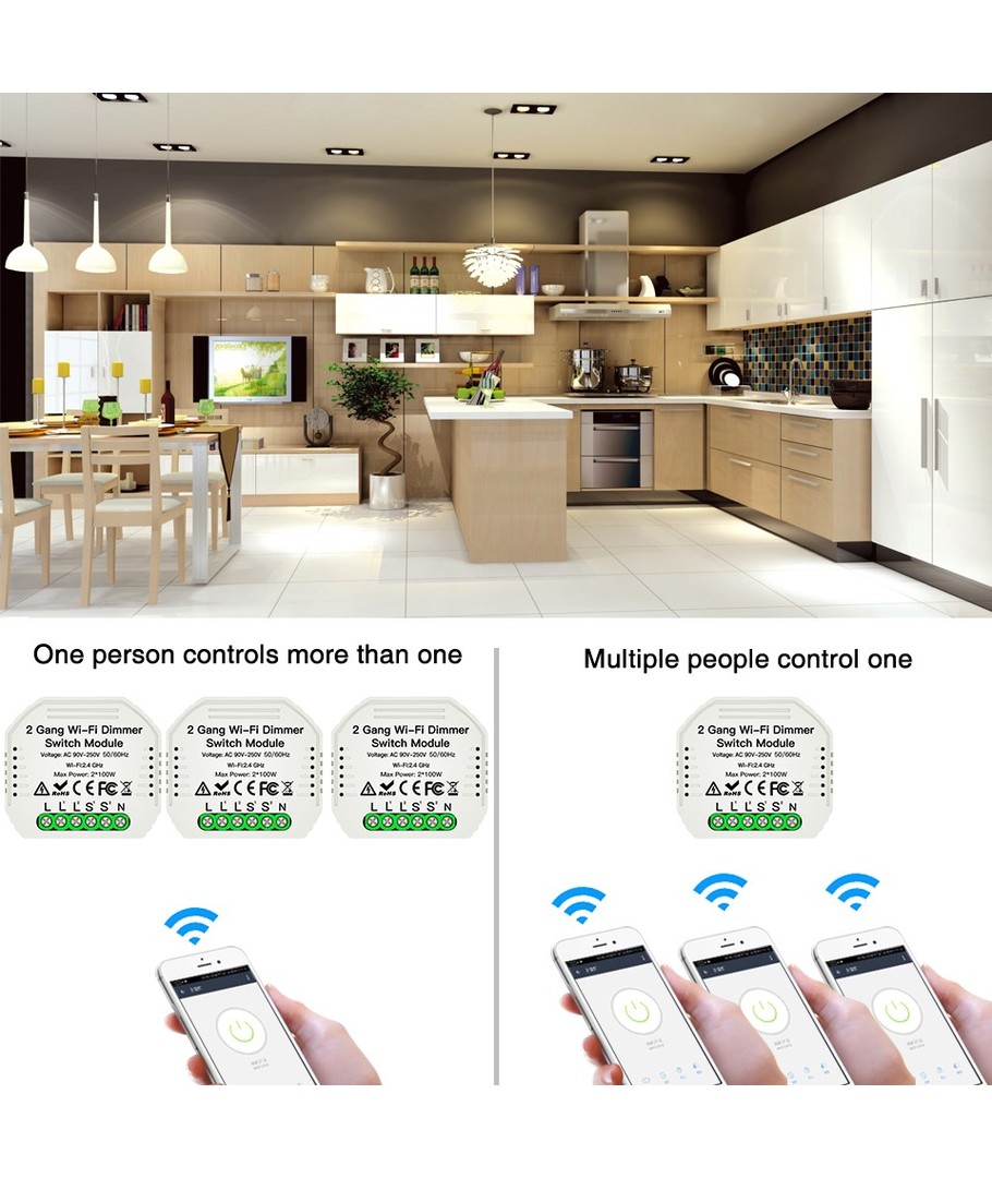 Med dimmeren kan du slå av og på lyset med bryter eller smart styring, samt dimme lyset via smart styring i app.