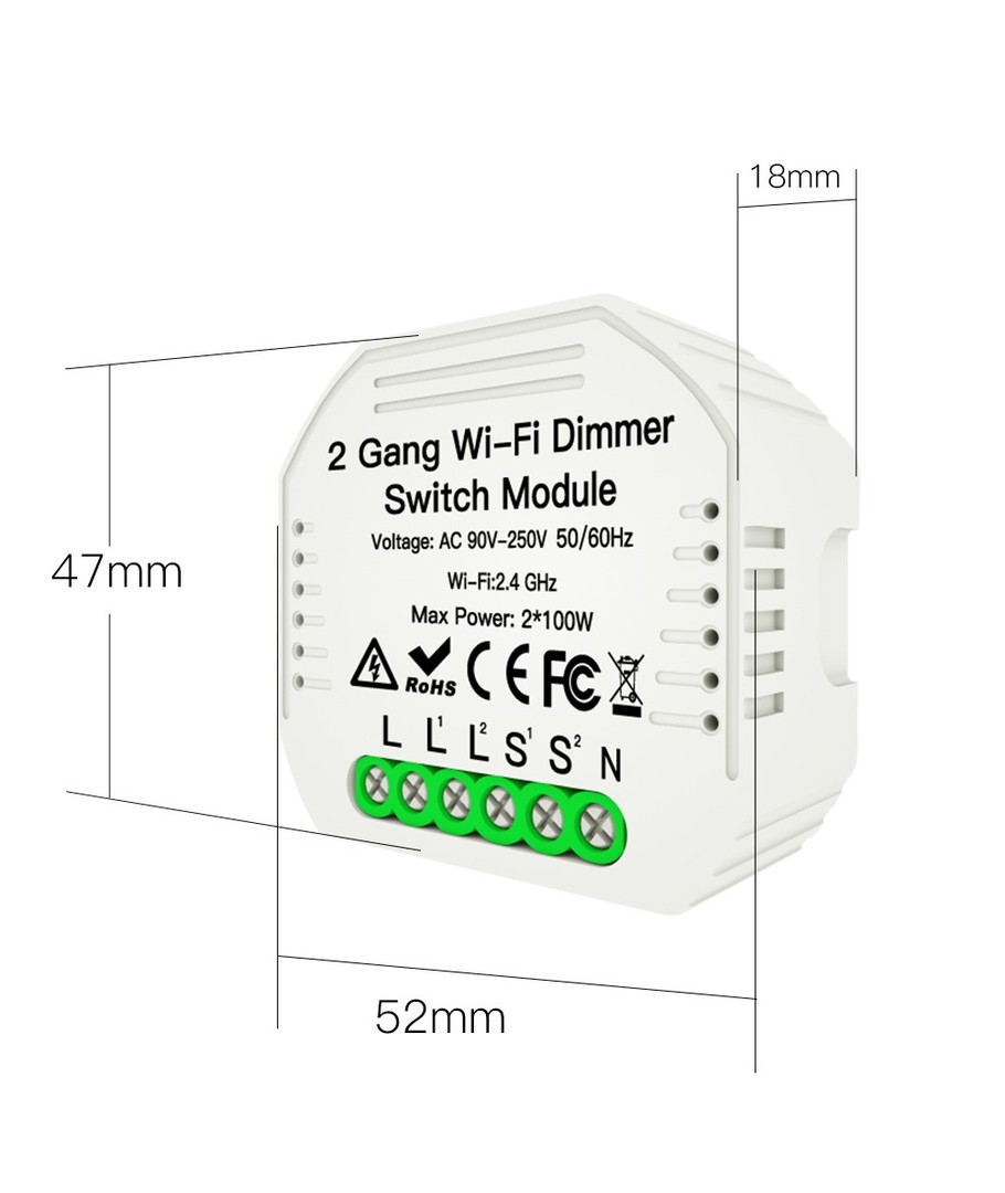 Dimmeren har 2 utganger, så den kan bruke dobelltkontakt og styre 2 forskjellige grupper individuelt.