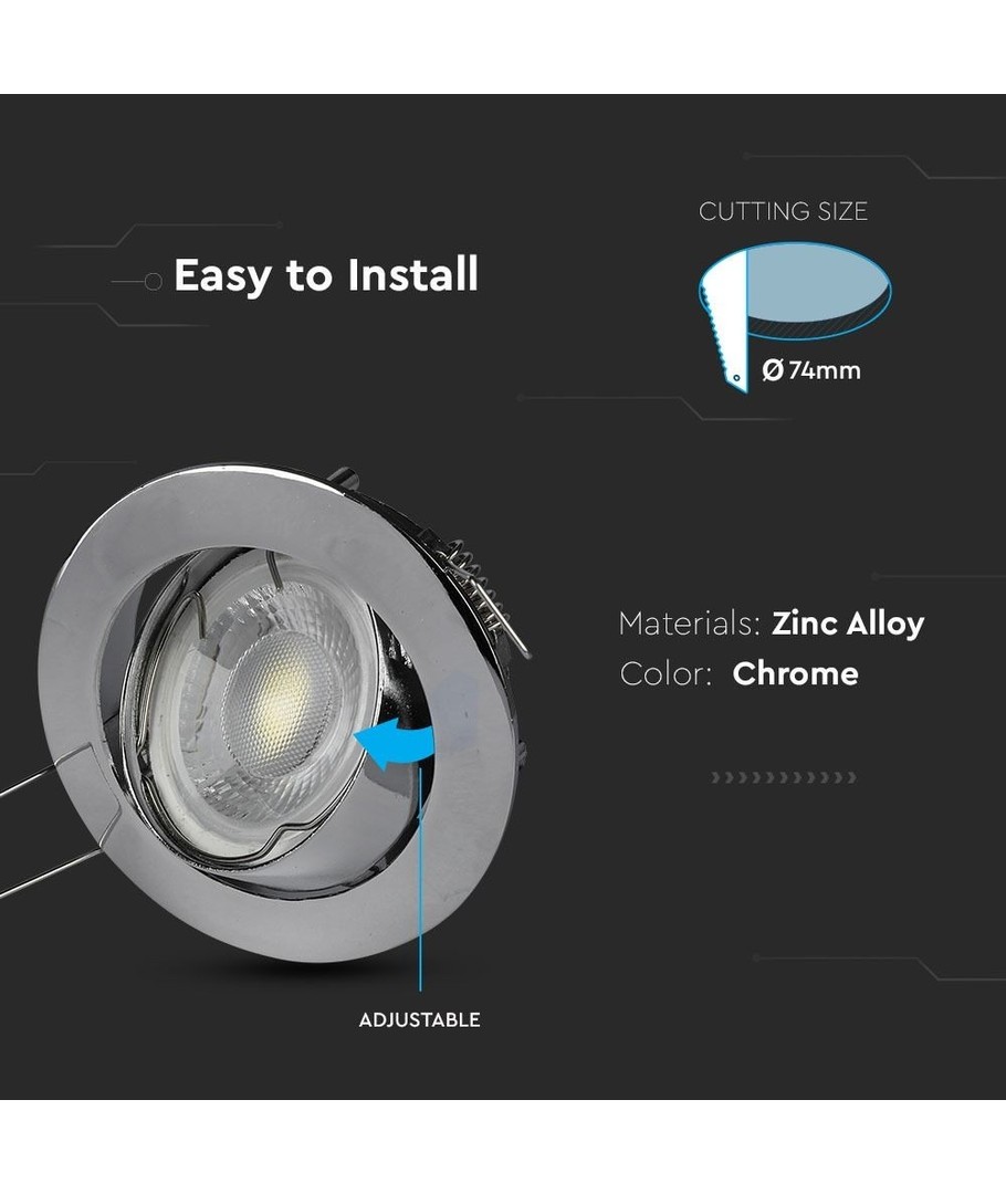 Passer til MR16 eller GU10 LED-pærer med en diameter på 50 mm.