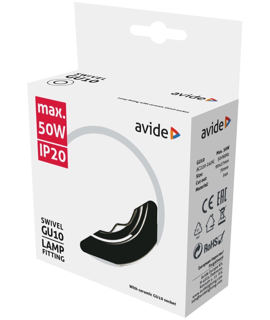 Passer til MR16 eller GU10 LED-pærer med en diameter på 50 mm.