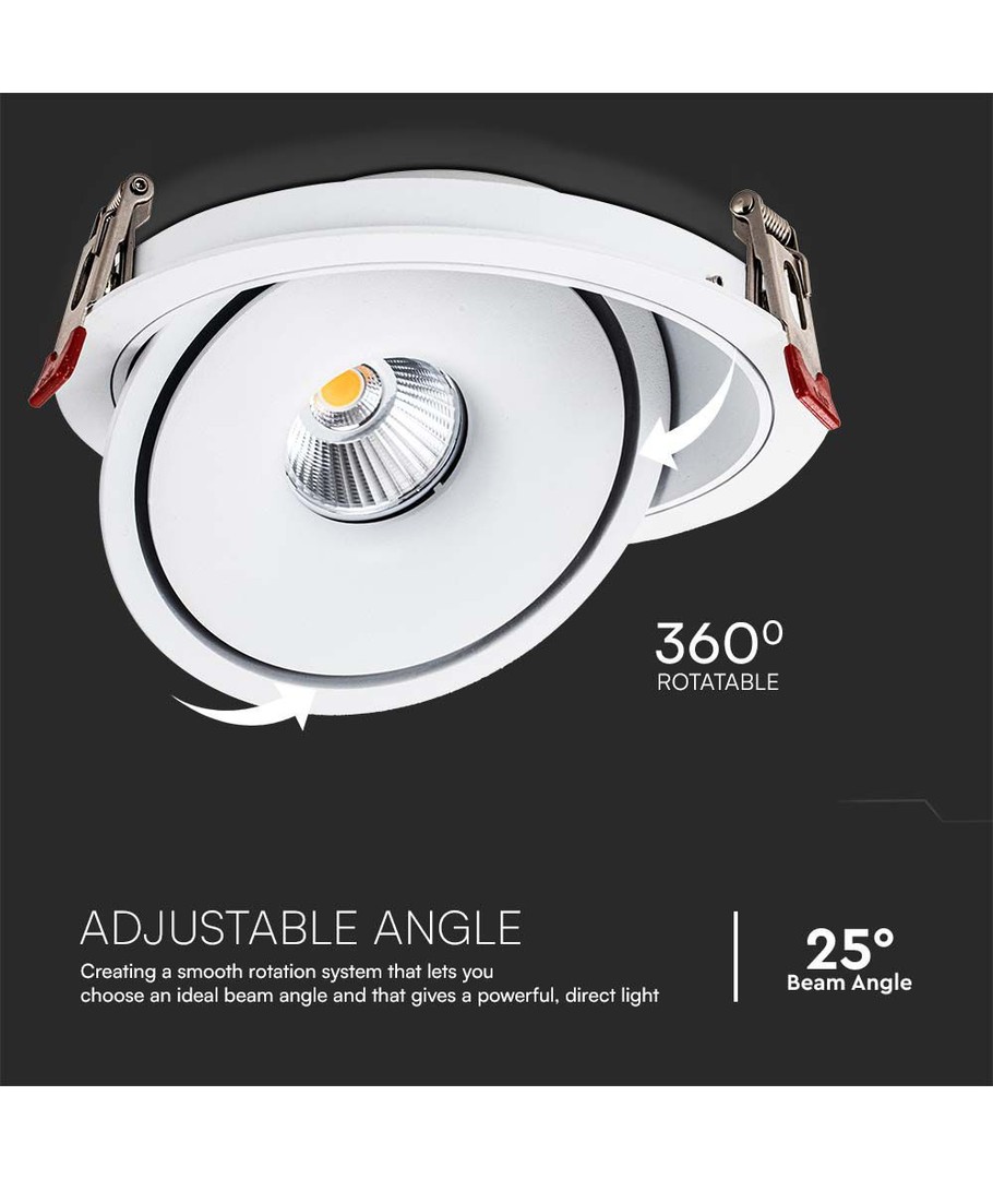 V-Tac 20W downlight kommer med en integrert lyskilde, noe som betyr at du ikke trenger å bekymre deg for å bytte pære. Den er effektiv og gir lang varighet. Takket være dens energisparende teknologi, kan du nyte kvalitetsbelysning uten å bekymre deg for høye strømregninger.