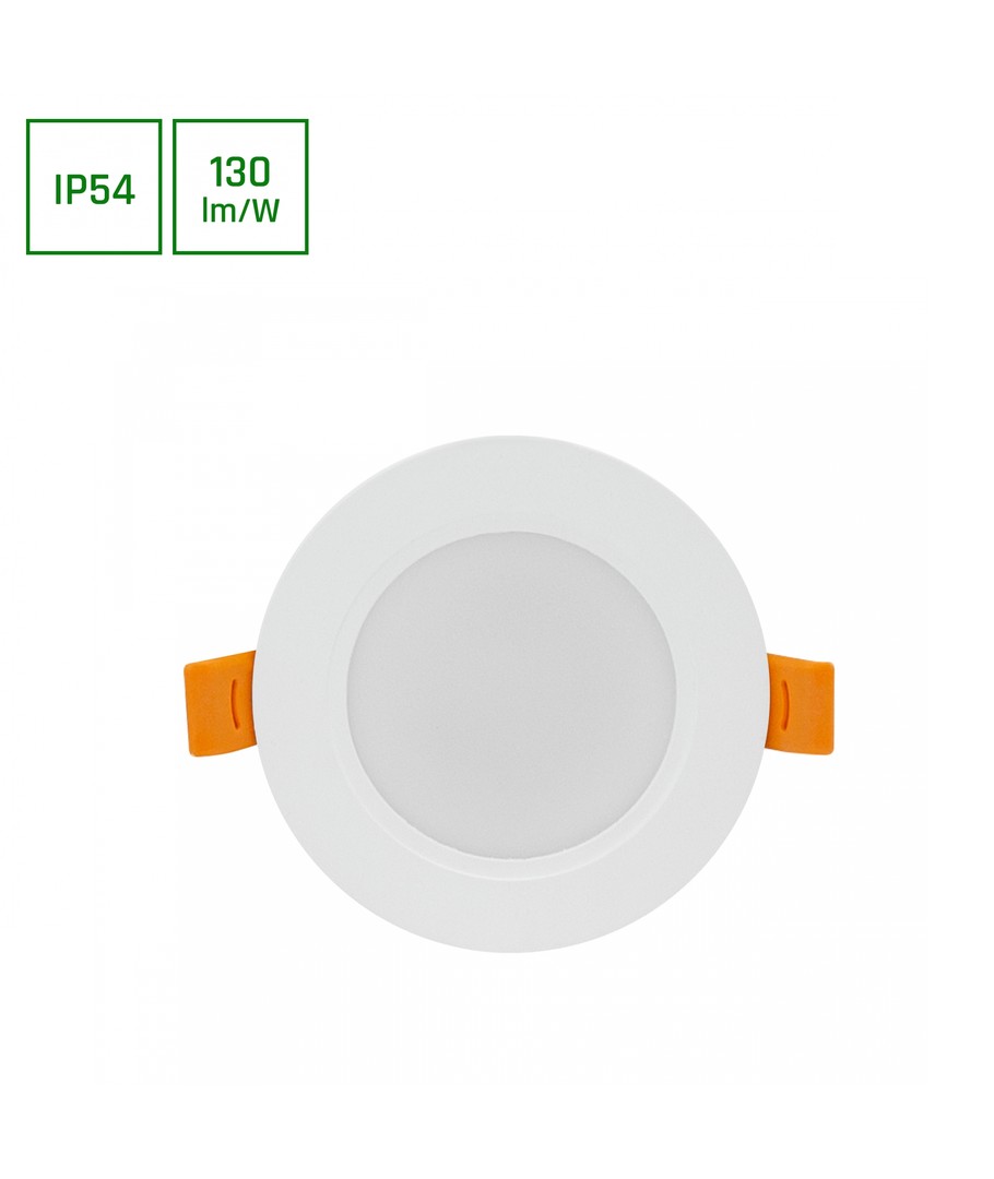 Med sin sprutsikre IP54-rating er denne spotten designet for å tåle både fukt og vannsprut, noe som gjør den ideell for bruk i både bad og andre områder med høy luftfuktighet. Den integrerte lyskilden og det stilrene utformingen med den runde, hvite kanten gir en moderne touch til enhver innredning.