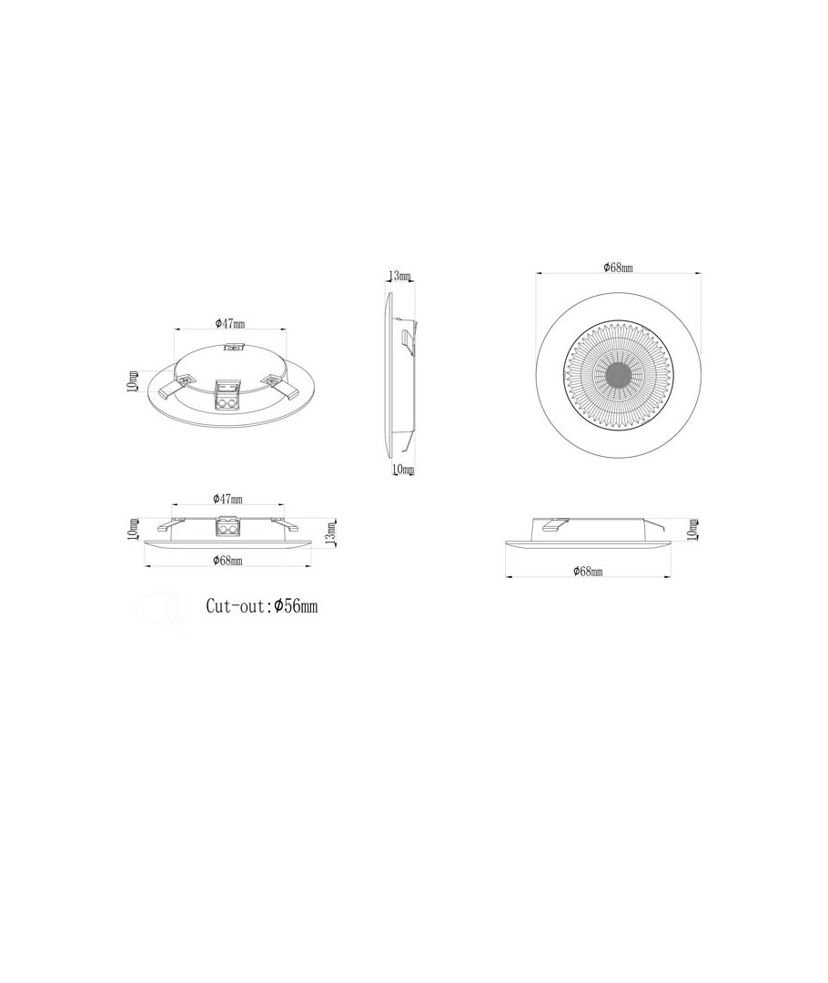 Installasjonen er enkel, da det kreves en hul størrelse på 560 mm, noe som sørger for en sømløs integrasjon i taket. Den kompakte størrelsen på 13 x Ø68 mm gjør den til en smart løsning for ulike rom og applikasjoner.