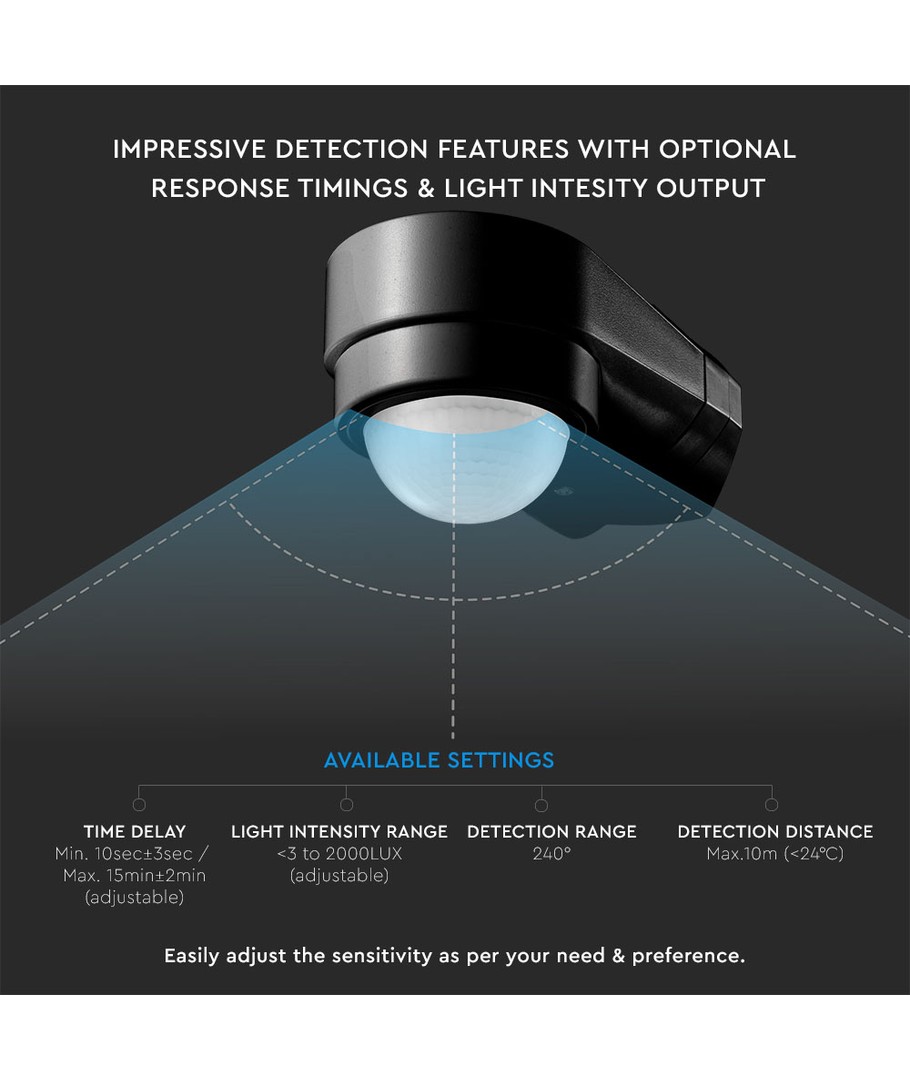 Sort hjørnesensor, designet for å oppfange bevegelser effektivt og pålitelig.