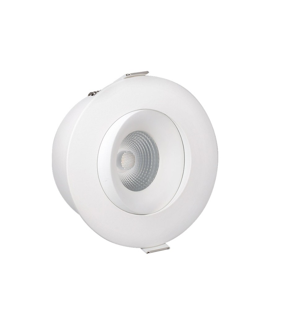 Hull: Ø6,8 cm, Mål: Ø8,3 cm, 7W, hvit kant, dimbar, 230V