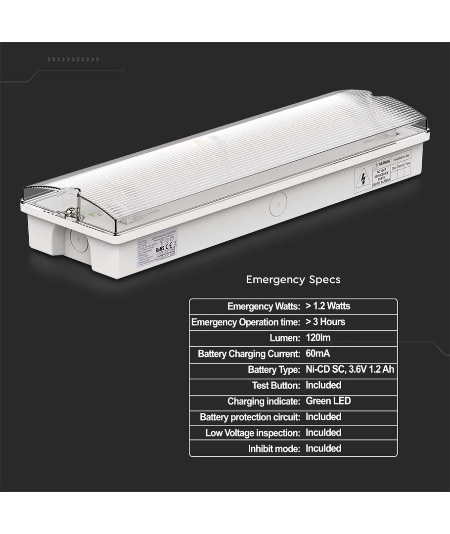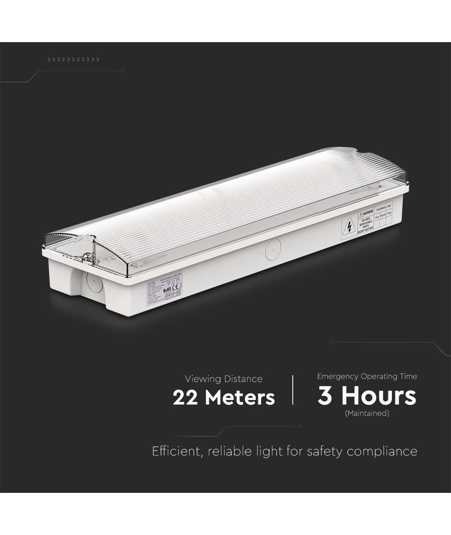 Dette nødlyset og exit-skiltet fra V-Tac er en sikkerhetsløsning som kombinerer effektivitet og design for optimal trygghet. Med en effekt på 3W gir den en lysstyrke på 120 lumen, og en høy lysspredning på 120 grader som sikrer jevn belysning der det trengs mest.