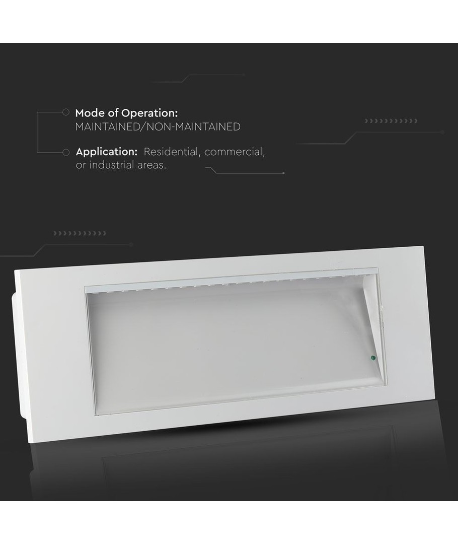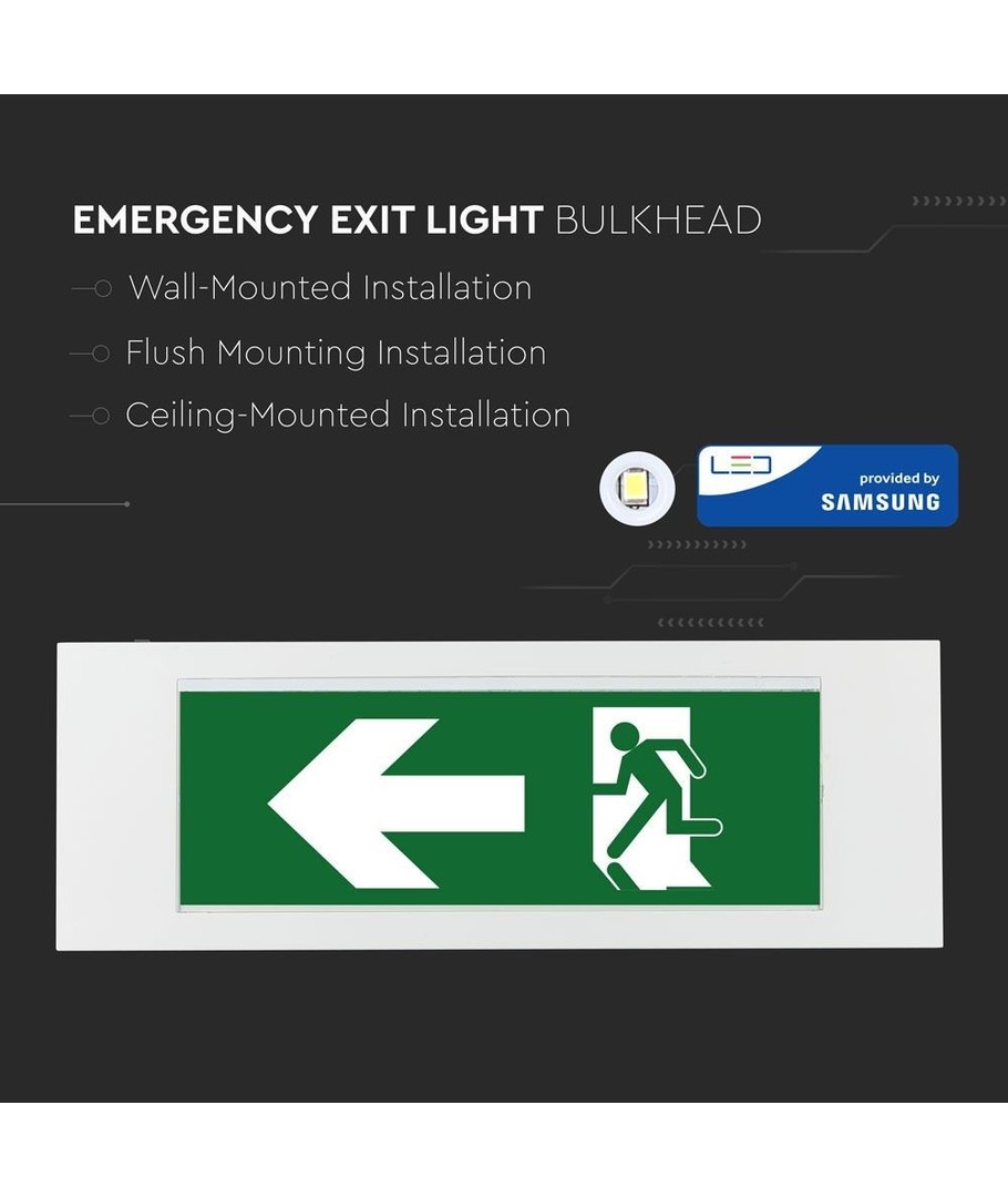 Skap sikkerhet og trygghet med dette stilrene 4W LED exit skiltet fra V-Tac, designet for allsidig bruk i både vegg-, tak- og innfelt montering. Dette produktet kombinerer moderne teknologi med praktisk funksjonalitet for å tilby en pålitelig løsning for nødutganger.
